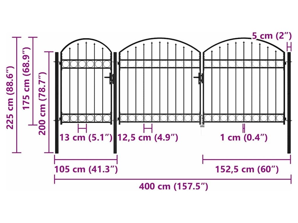 Zahradní plotová brána s obloukem ocelová 2,25 x 4 m [144369]