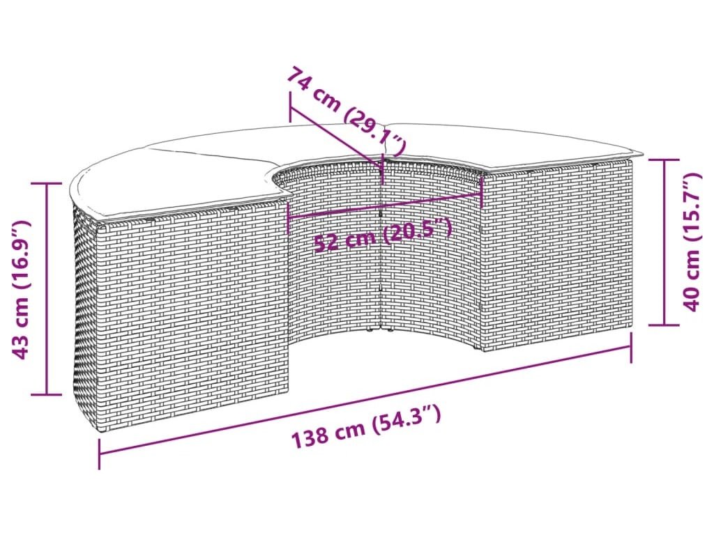 | Rozměry podušky na sedák: | 52/140 x 44 x 3 cm (D x Š x T) |