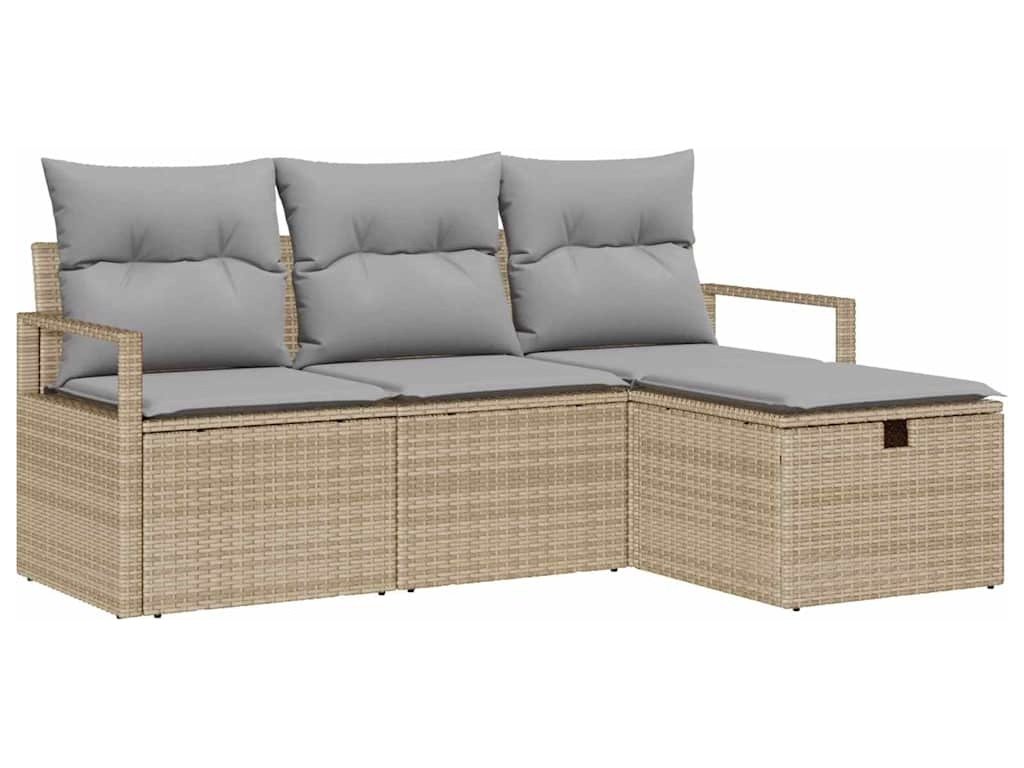 Set pohovek s polštářem 4 pcs Béžová a Světle šedá polyratan [3359149]