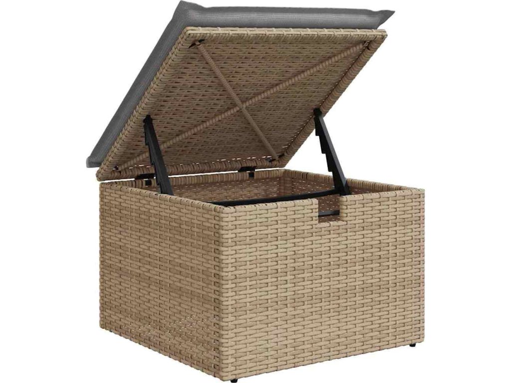 - Integrované úložné prostory: Set má skryté úložné přihrádky, ideální na polštáře nebo jiné osobní věci. Tyto úložné prostory zvyšují praktičnost a udržují váš venkovní prostor uklizený a organizovaný.