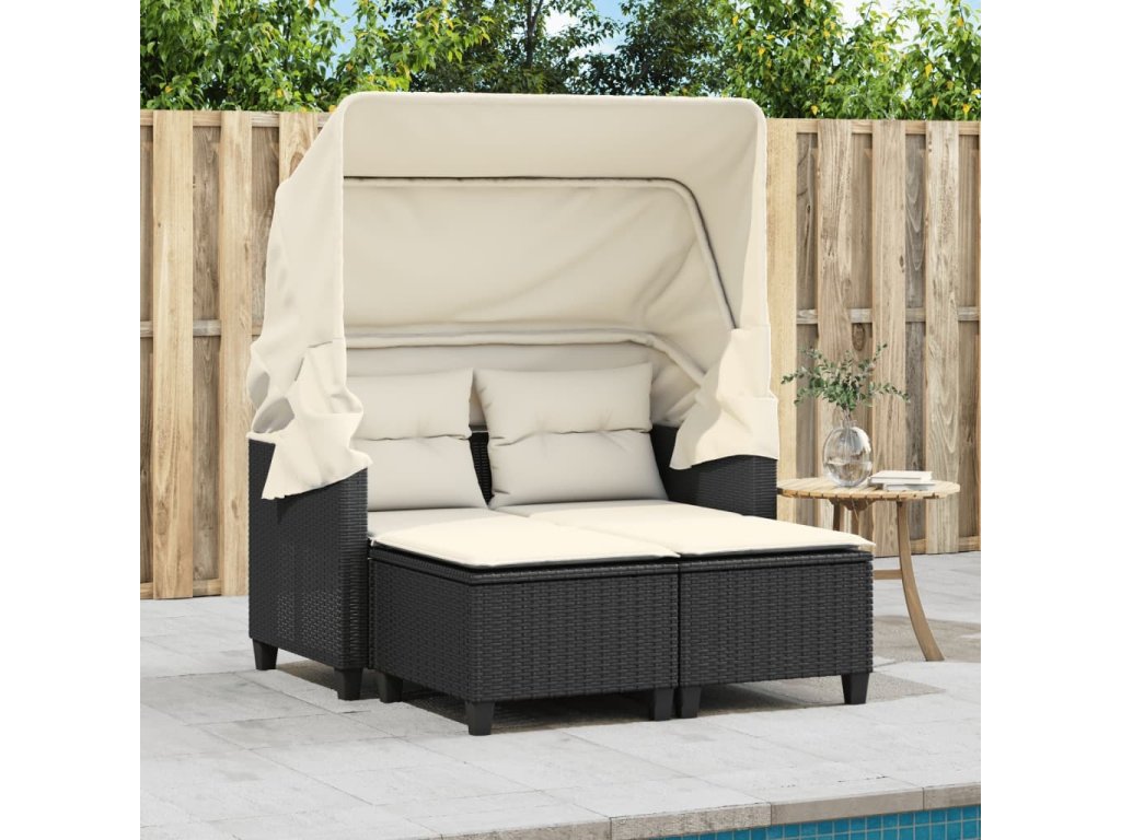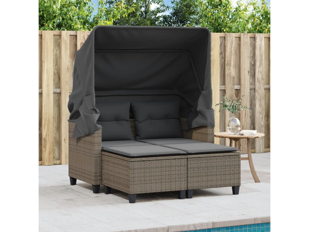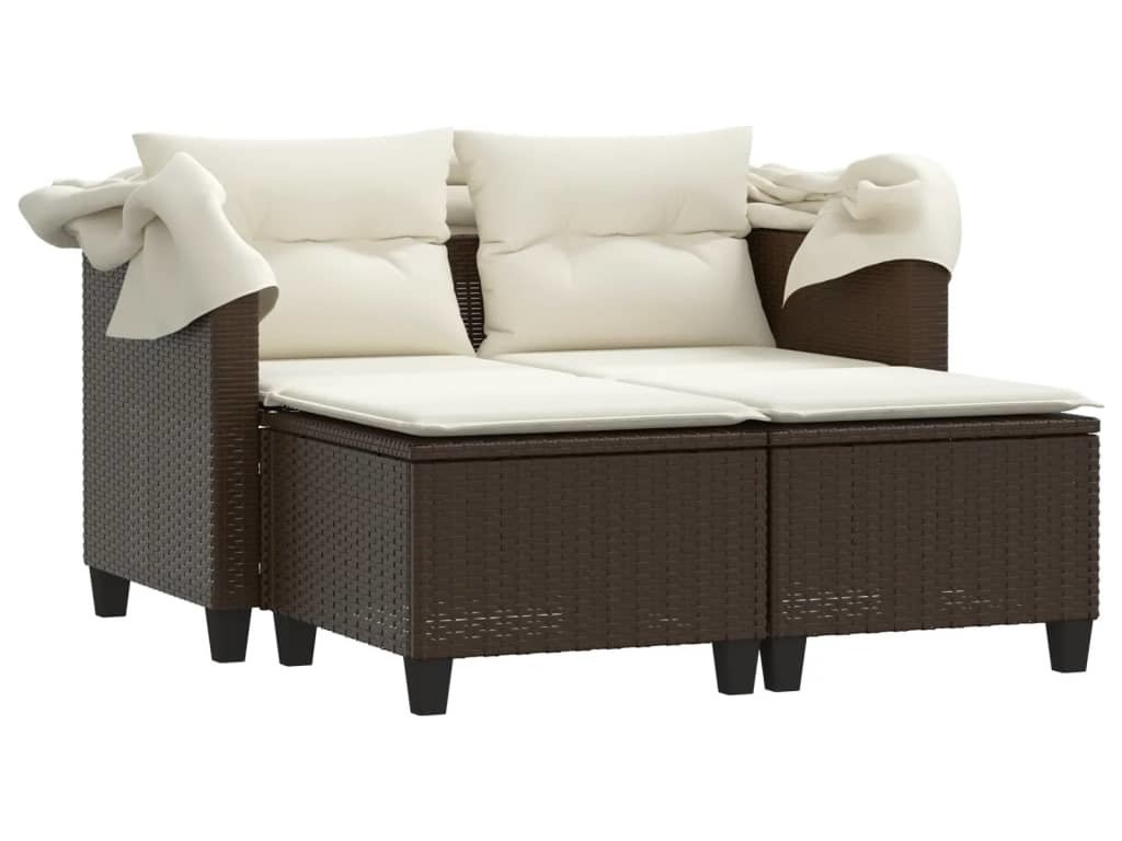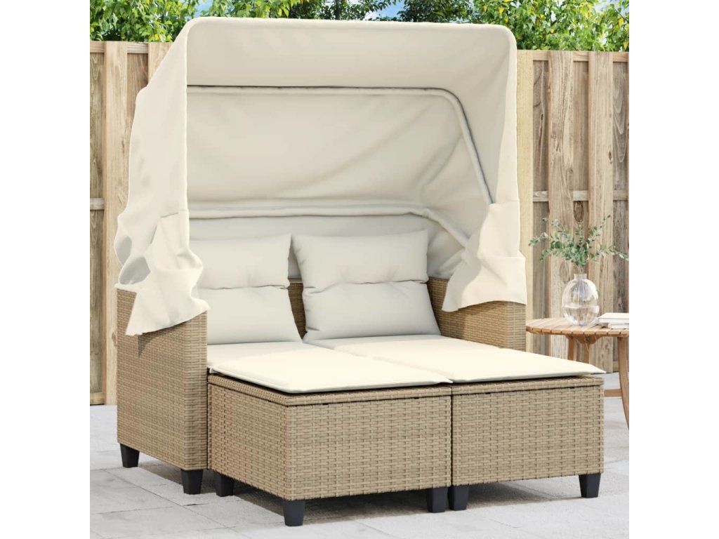 Zahradní pohovka 2místná stříška taburety polyratan [365780]