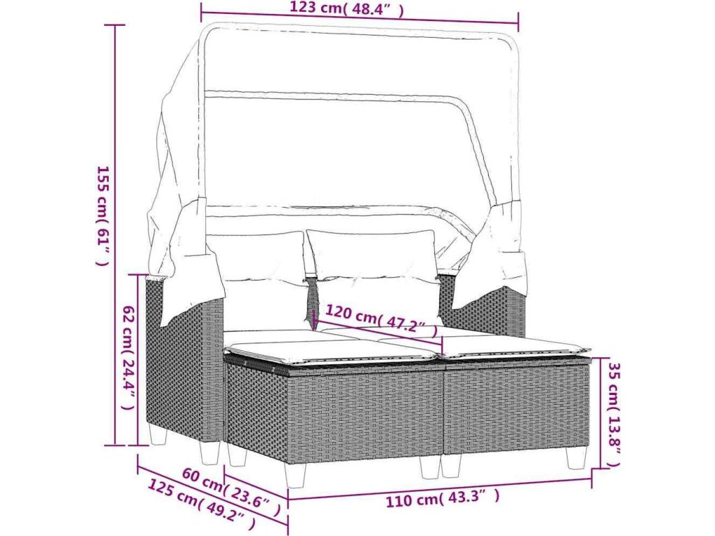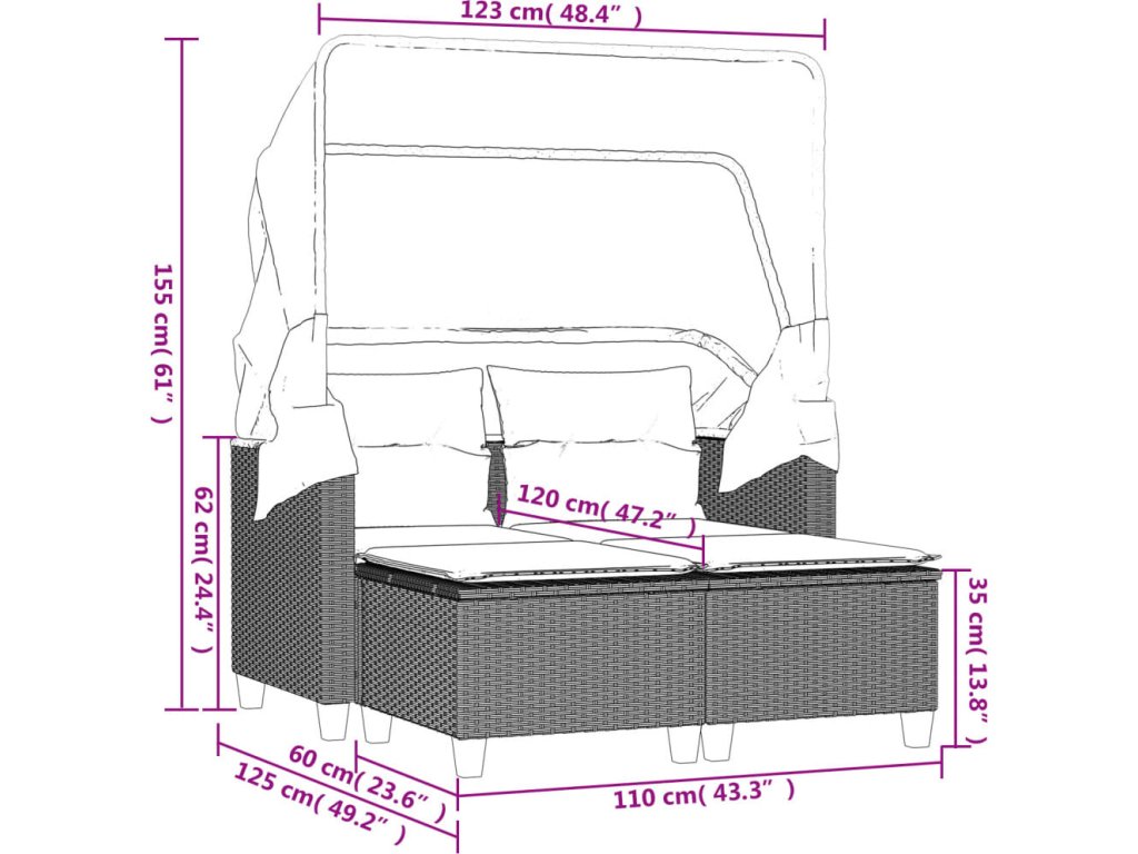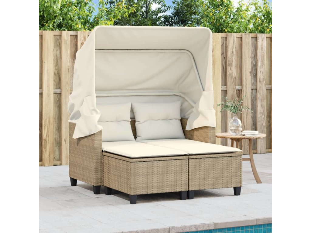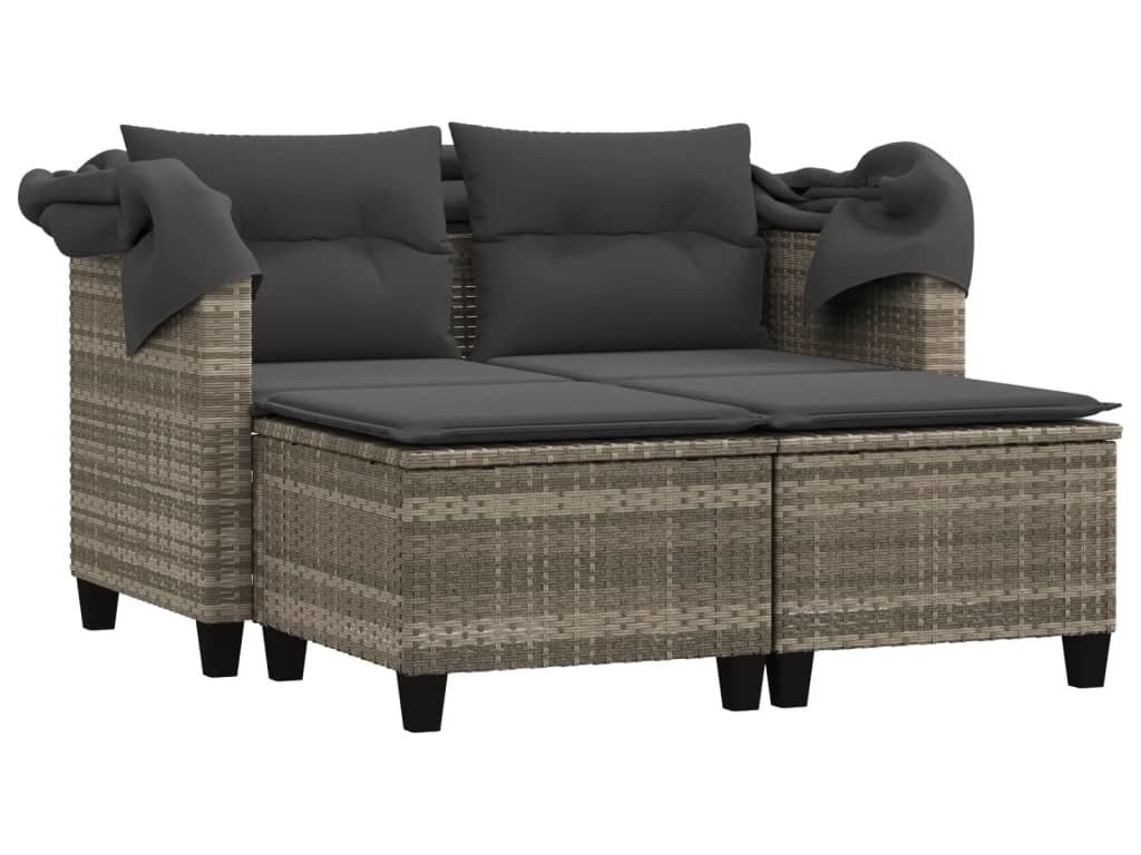 Zahradní pohovka 2místná stříška taburety polyratan [365780]