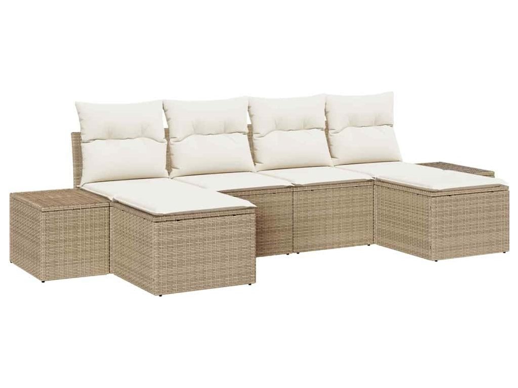 Sada zahradních pohovek s polštářem 6 pcs Béžová polyratan [3347171]