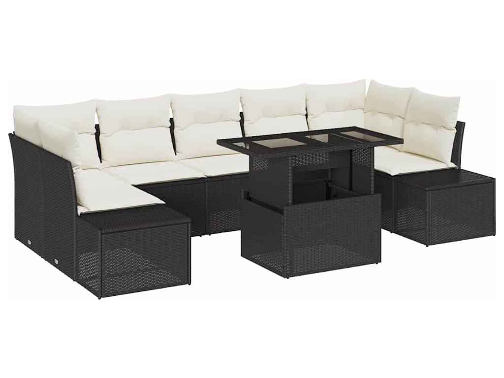 Sada zahradních pohovek s polštářem 8 pcs Černá a krémová [3357870]