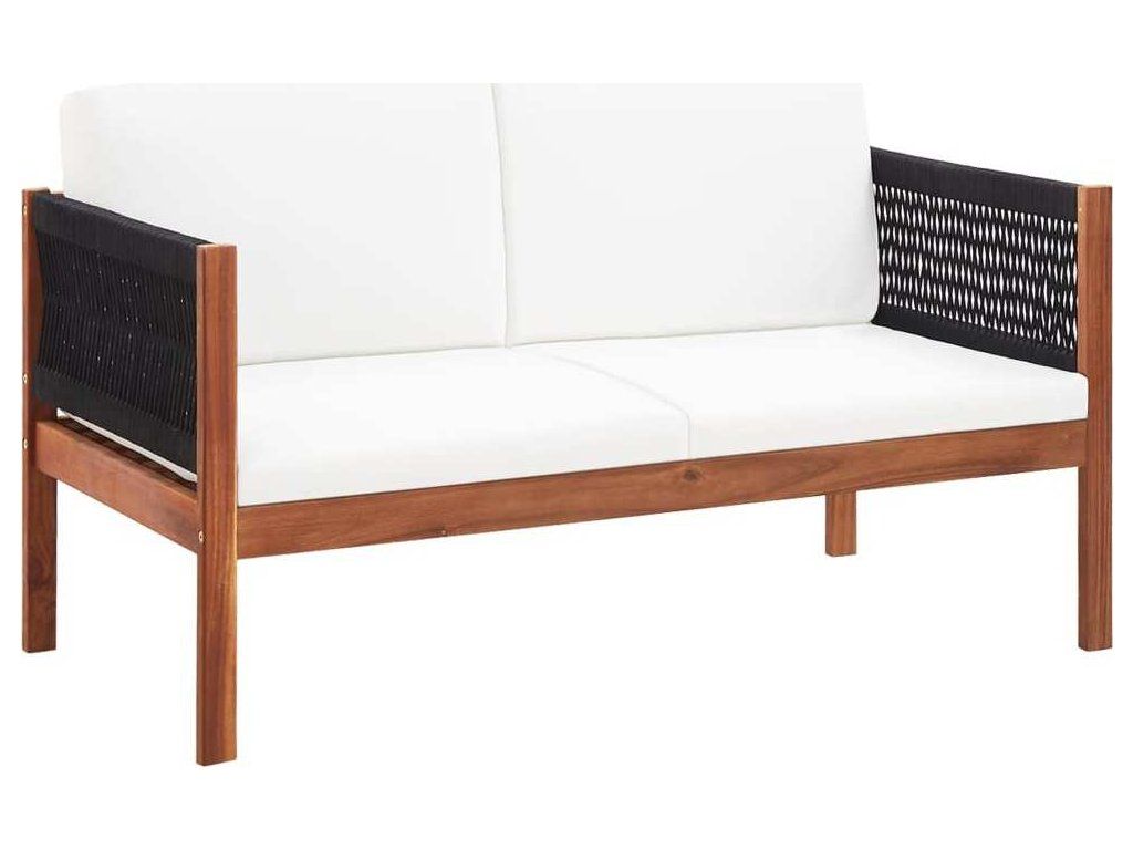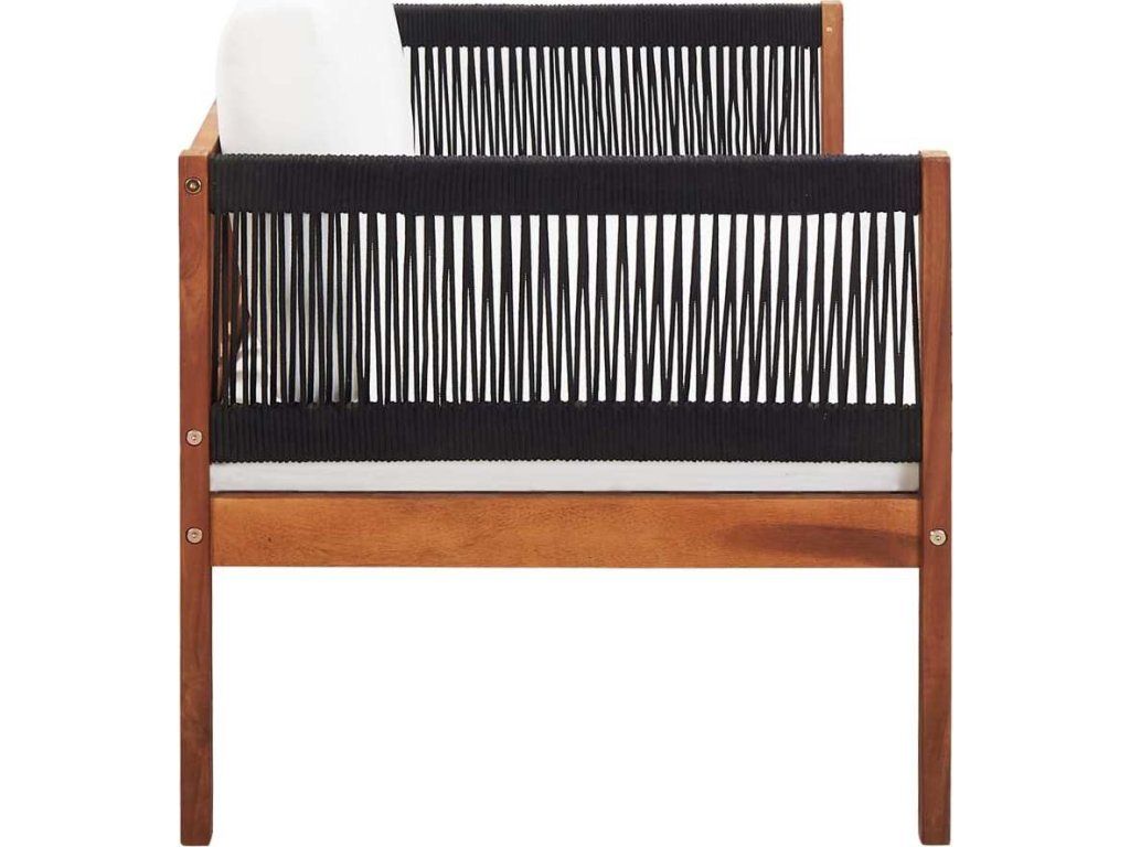 Pohovka je vyrobena z masivního akáciového dřeva, vyznačuje se tedy extrémní odolností a je vhodná pro venkovní použití. Se svým nevšedním provázkovým designem zaujme každého na první pohled. Lavice je navíc také lehká, takže se dá snadno přesouvat z místa na místo. Silně polstrované podušky zaručují pohodlné sezení.