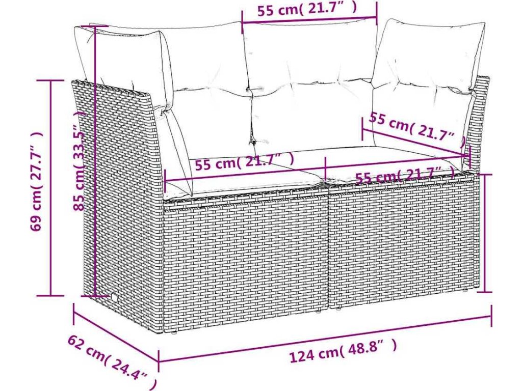 Zahradní pohovka s poduškami 2místná polyratan [366192]