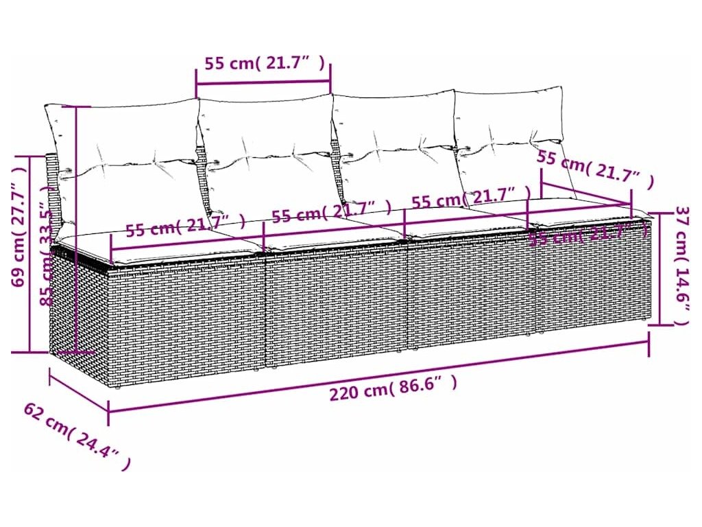 Zahradní pohovka s poduškami 4místná polyratan [366178]