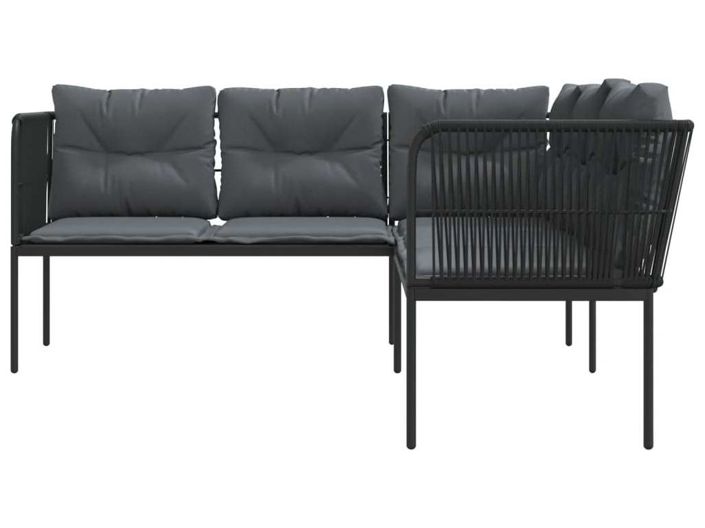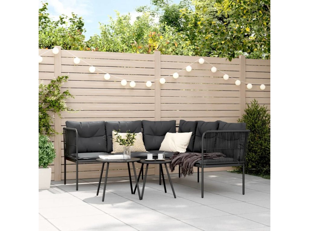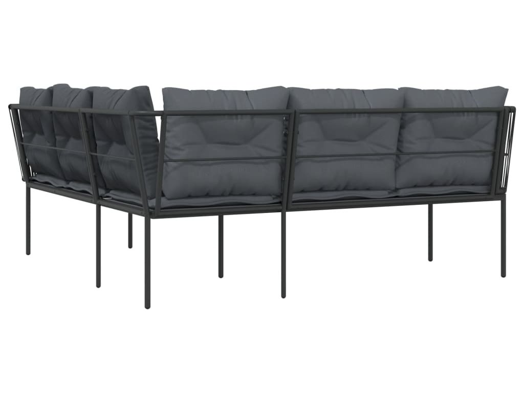 Zahradní pohovka s poduškami tvar L černá ocel a textilen [4008107]