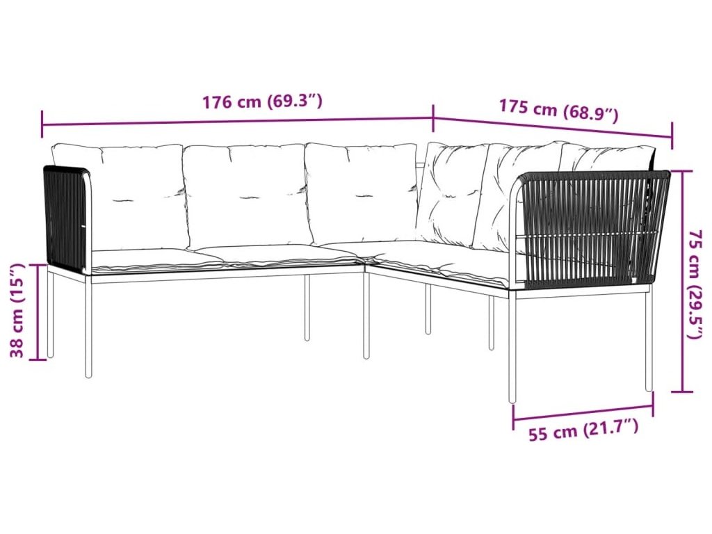Tato zahradní pohovka ve tvaru písmene L je dokonalým doplňkem vaší zahrady, terasy nebo dvorku a poskytne vám pohodlné a příjemné místo, kde si můžete povídat s rodinou a přáteli nebo jen tak odpočívat a užívat si pobyt venku.
