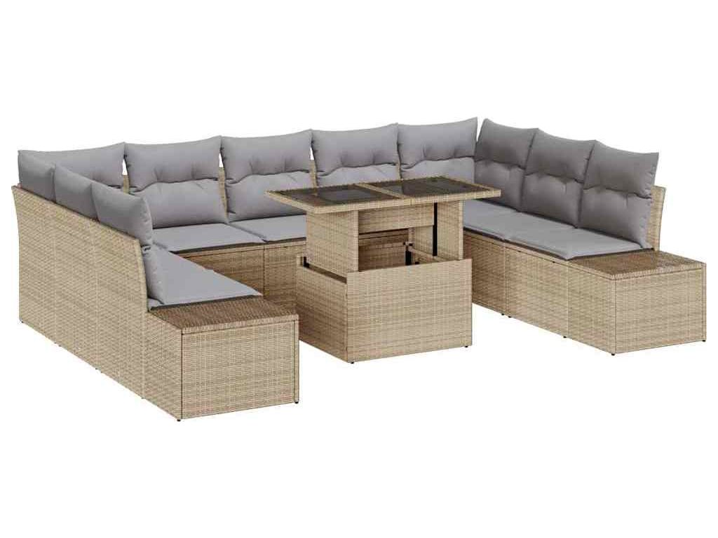 Sada zahradních pohovek s úložištěm 10 pcs Béžová Poly ratan [3357983]