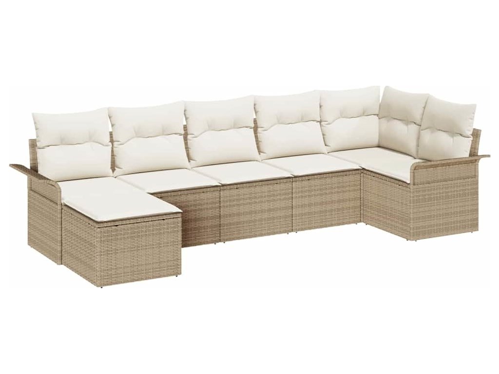 Sada zahradních pohovek s polštářem 7 pcs Béžová Poly ratan [3354120]