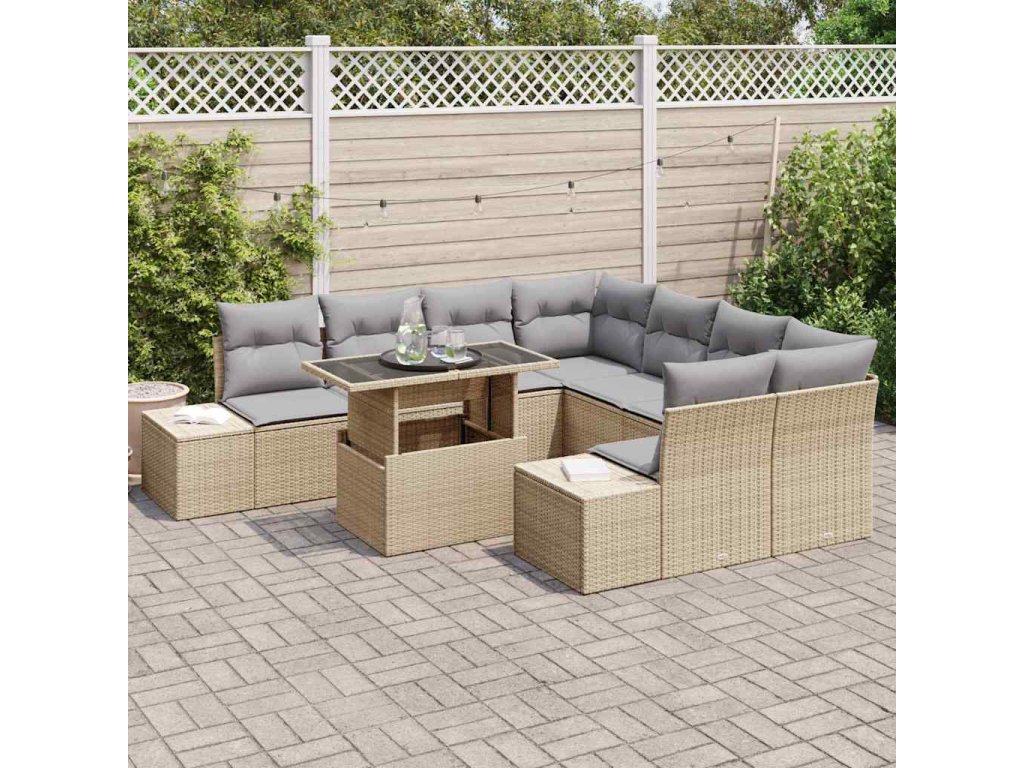 Sada zahradních pohovek s polštářem 9 pcs Béžová a Světle šedá [3357893]