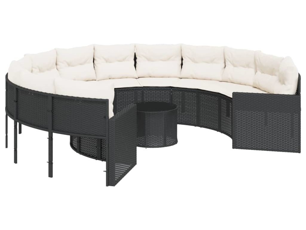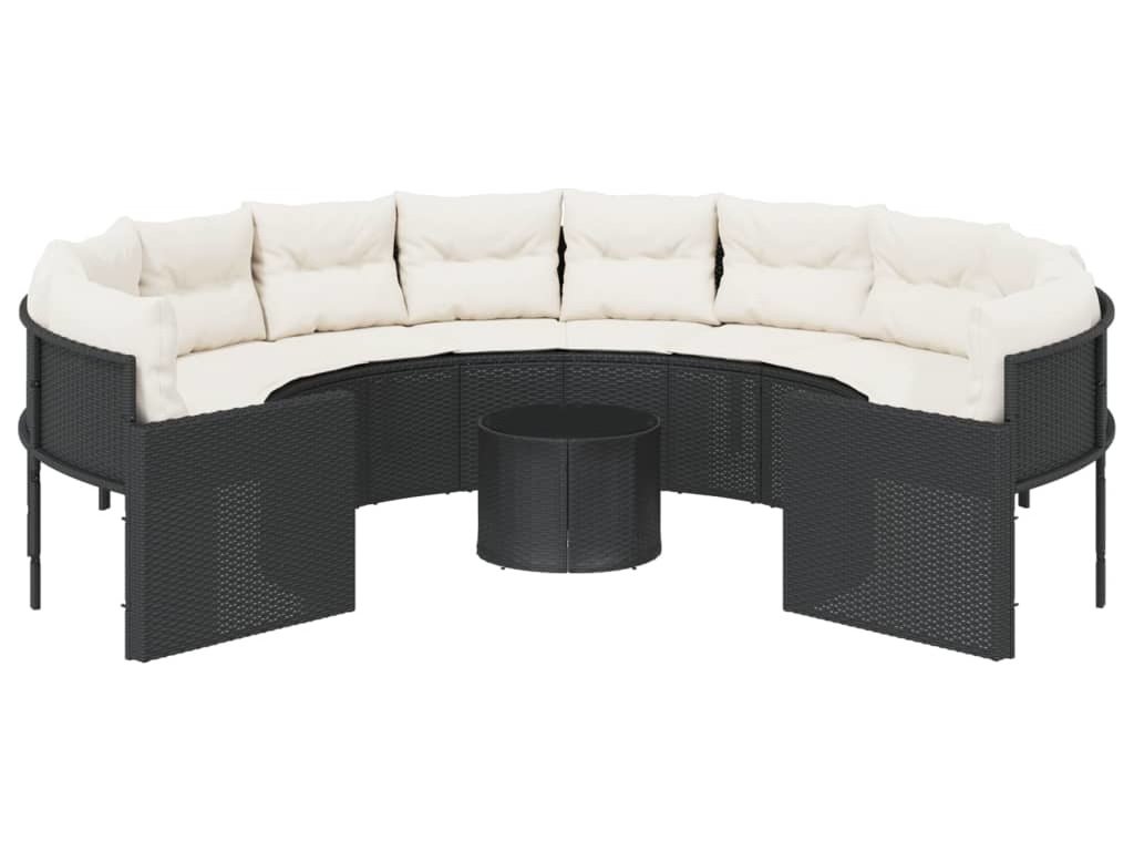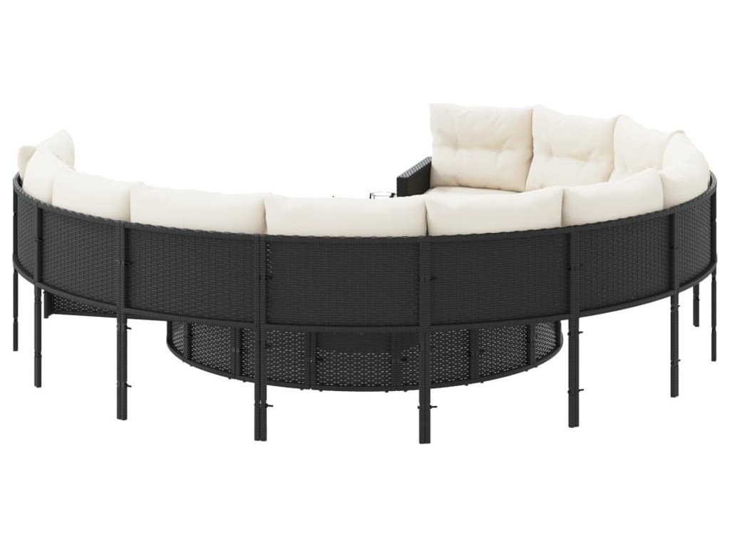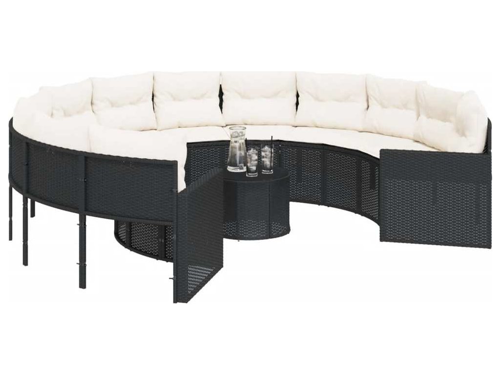 Zahradní pohovka se stolkem a poduškami kulatá černá polyratan [3318537]