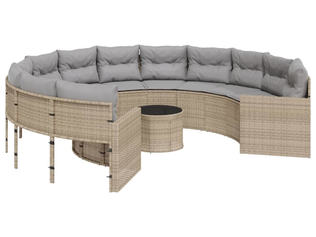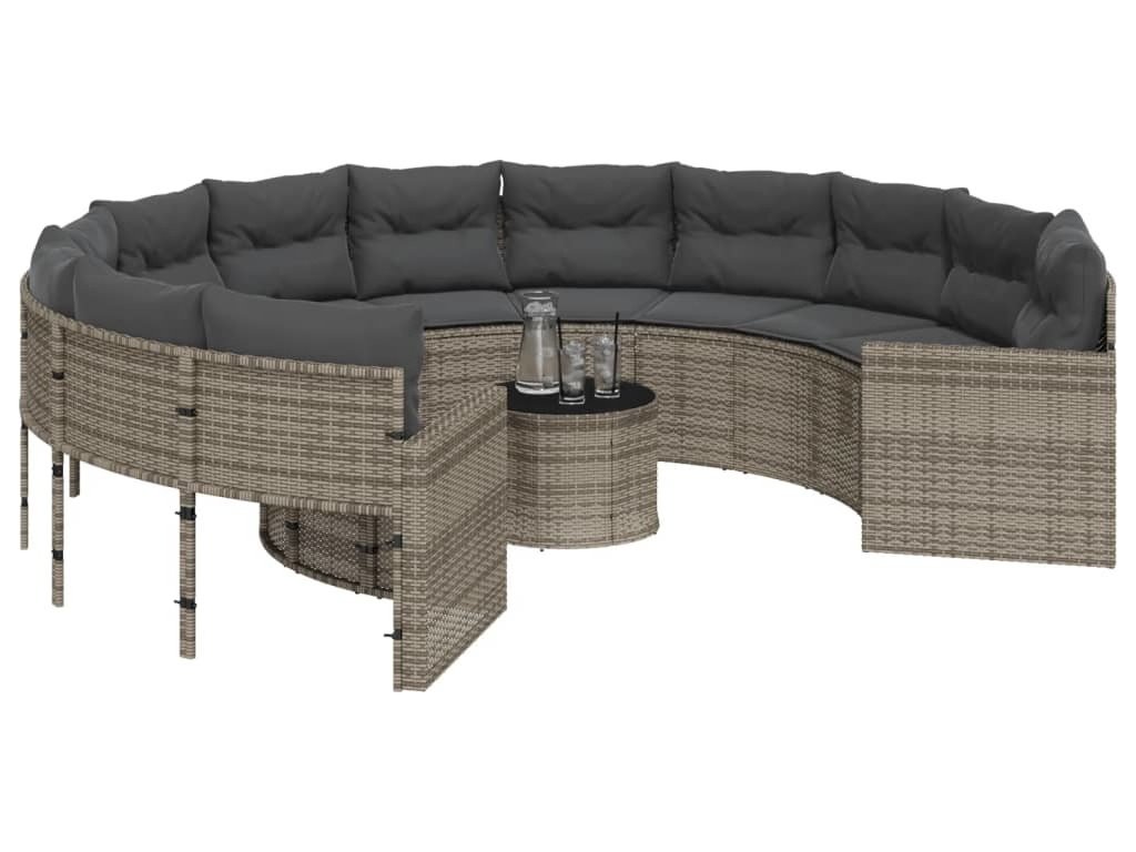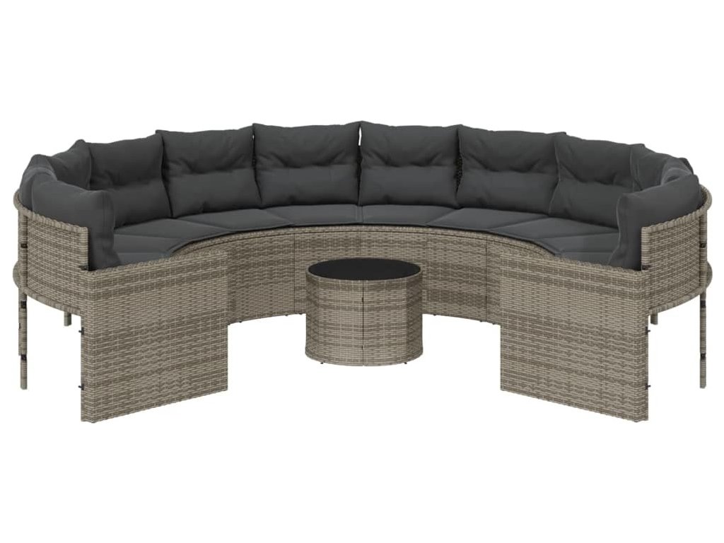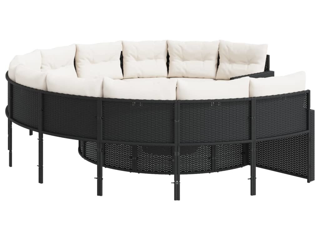 Zahradní pohovka se stolkem a poduškami kulatá černá polyratan [3318537]