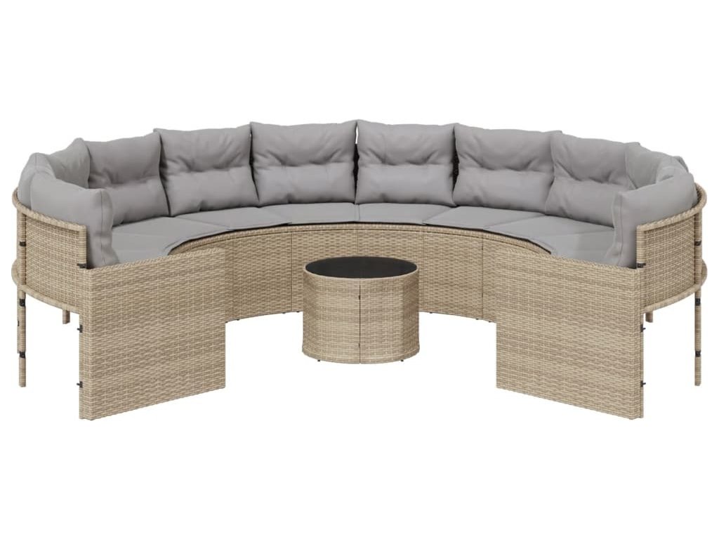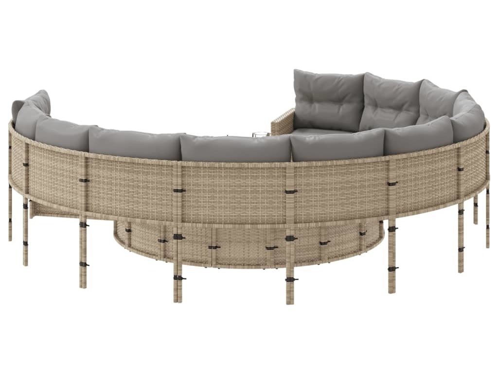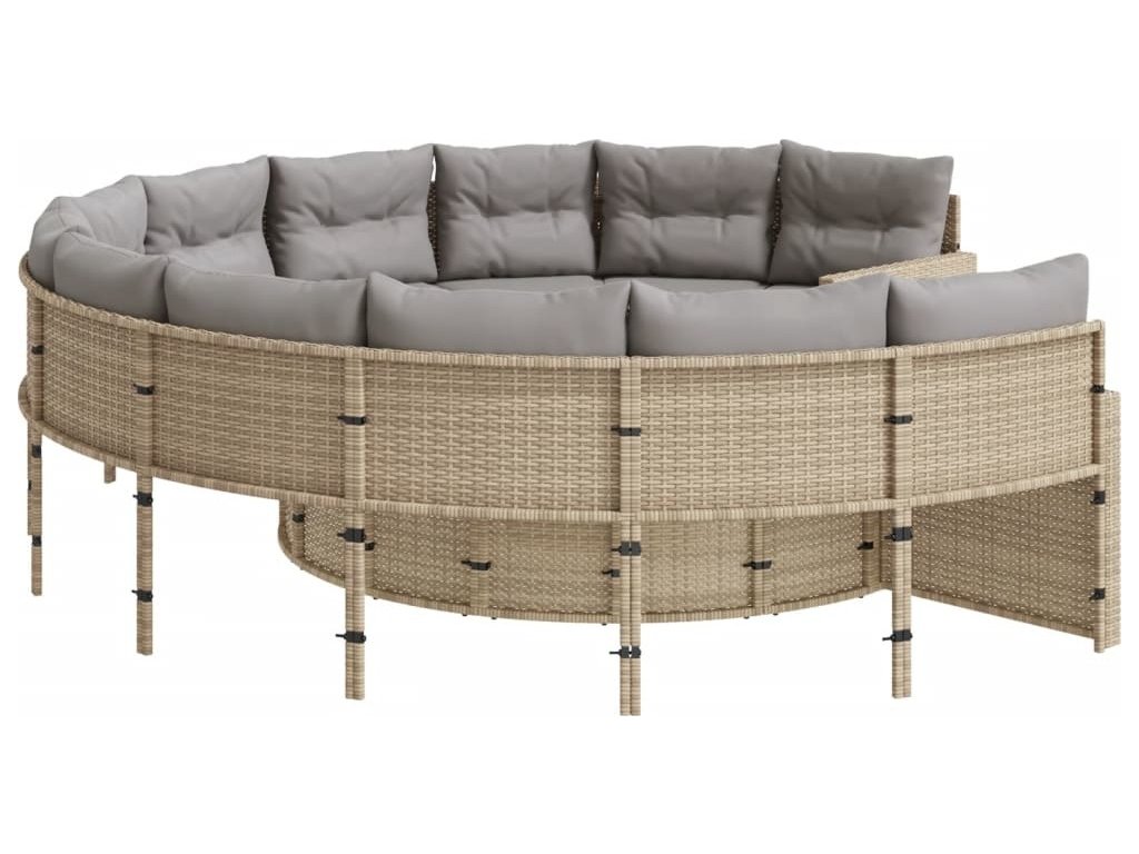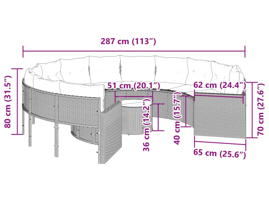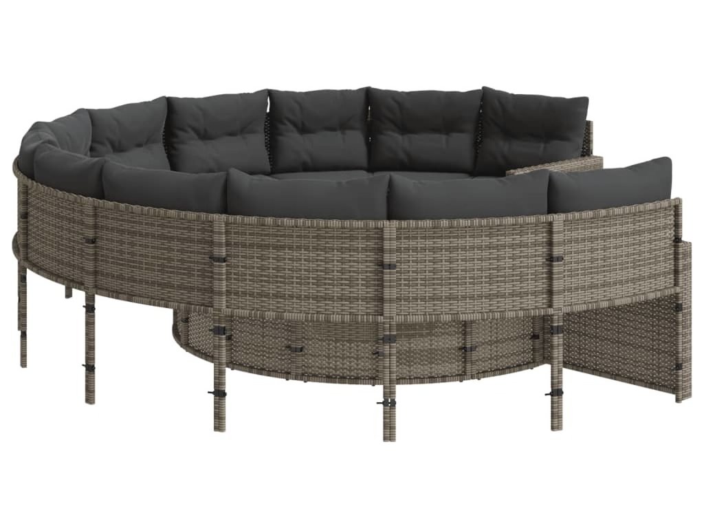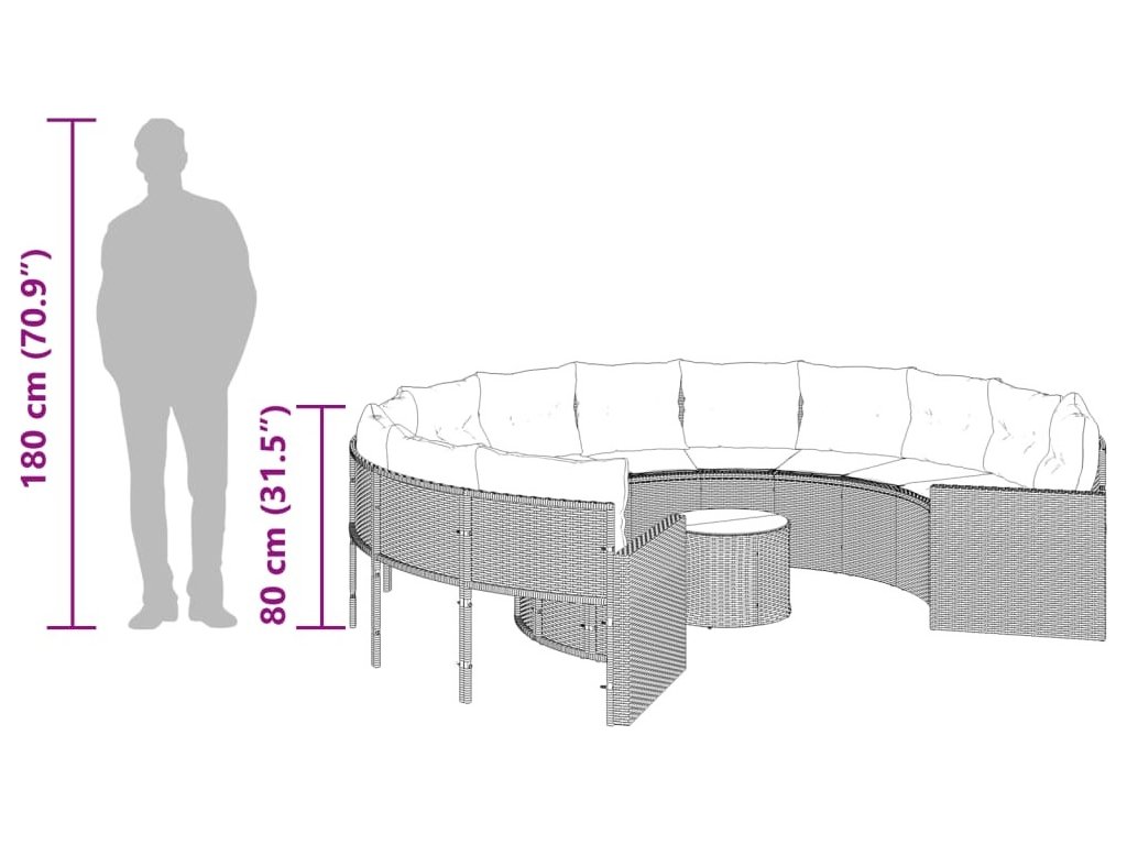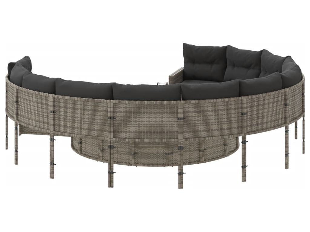 Tato zahradní pohovka kulatého tvaru je dokonalým doplňkem vaší zahrady, terasy nebo dvorku a poskytne vám pohodlné a příjemné místo, kde si můžete povídat s rodinou a přáteli nebo jen tak odpočívat a užívat si pobyt venku.