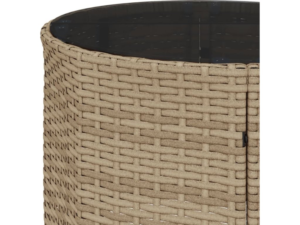 - Materiál: PE ratan, práškově lakovaná ocel, tvrzené sklo