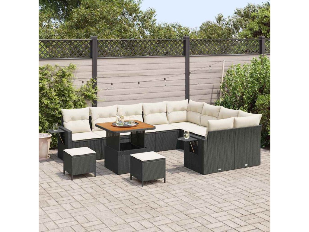 Sada zahradních pohovek 12 pcs Černá a krémová polyratan [3363730]