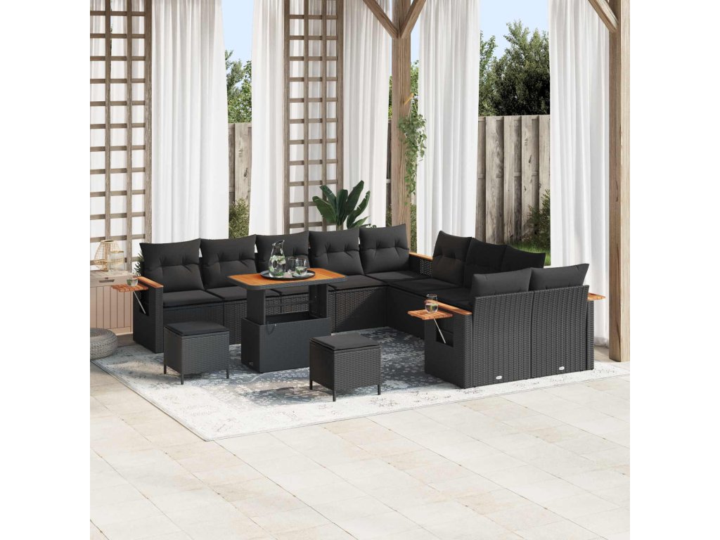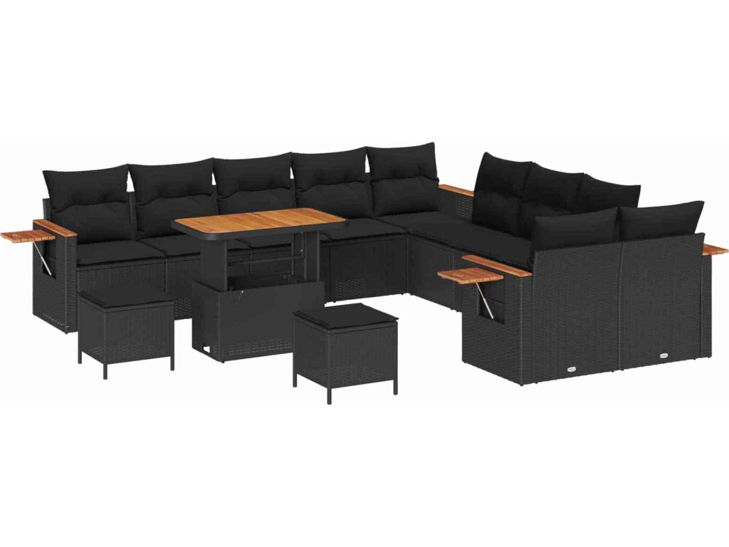 Sada zahradních pohovek s polštářem 17 pcs Černá polyratan [3365184]