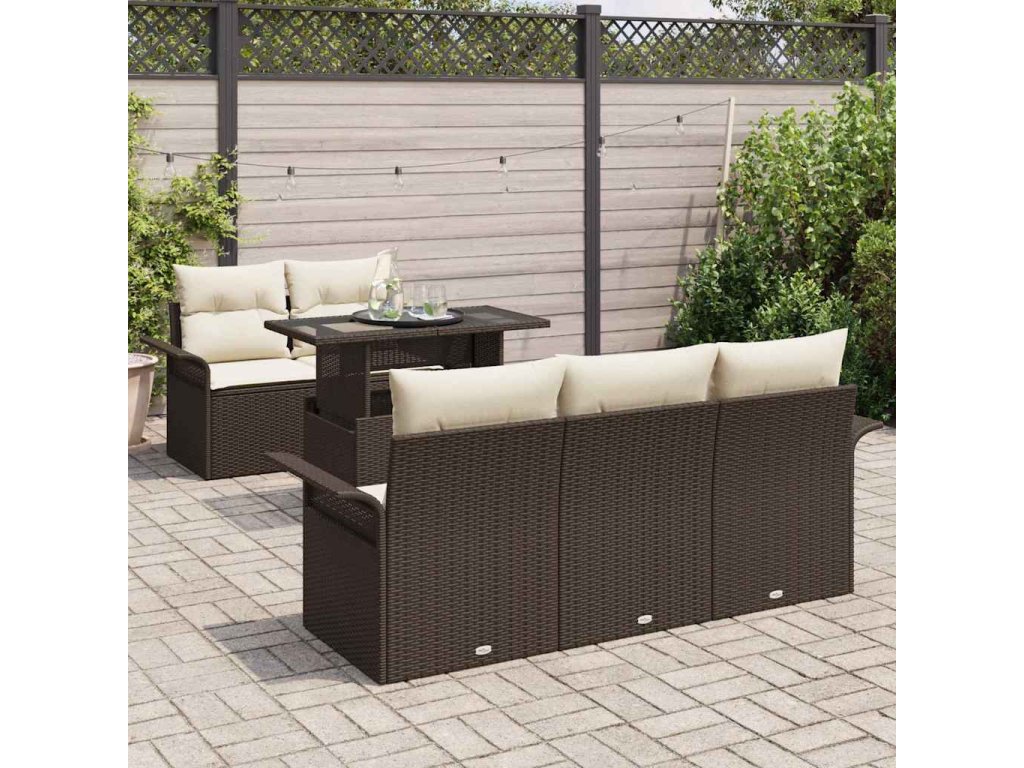 Sada zahradních pohovek s polštářem 6 pcs Hnědá polyratan [3348194]