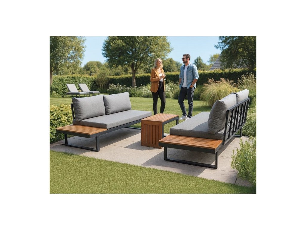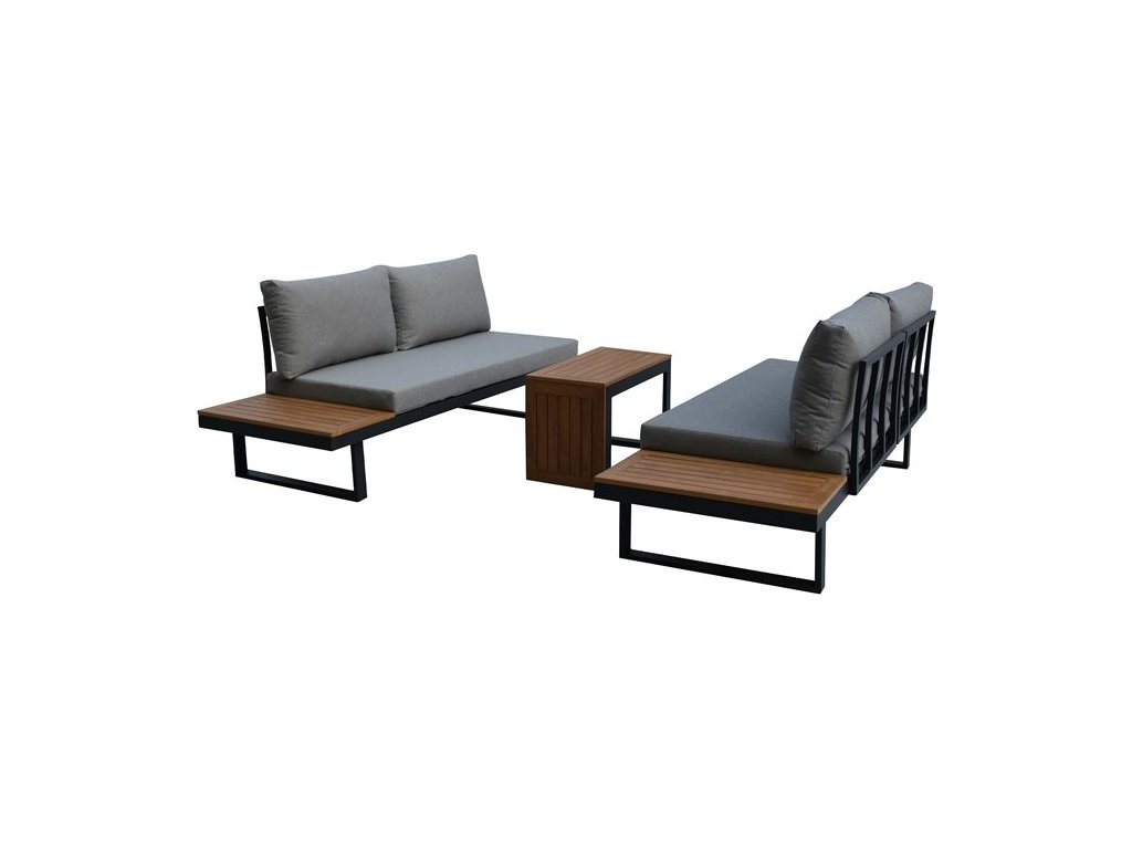 Obrovskou výhodou této zahradní sestavy je až neuvěřitelná variabilita. Sedačku tvoří dva samostatné stejné díly o rozměru 176 x 70cm.Díky tomu, že se zádové opěrky jednoduše nasadí na jejich konstrukci, bez šroubování, dokážete si sami během jedné minuty sedačku přeskládat podle aktuální potřeby. Jde tak vytvořit tři druhy rohových sedacích souprav, sestavu, která má dvě sedačky proti sobě, zahradní postel nebo dva otomany. Variabilní je též stolek, který má nožičky jak na kratší, tak delší straně, a může tak sloužit buď jako konferenční stolek, anebo jako stolek servírovací (na výšku).