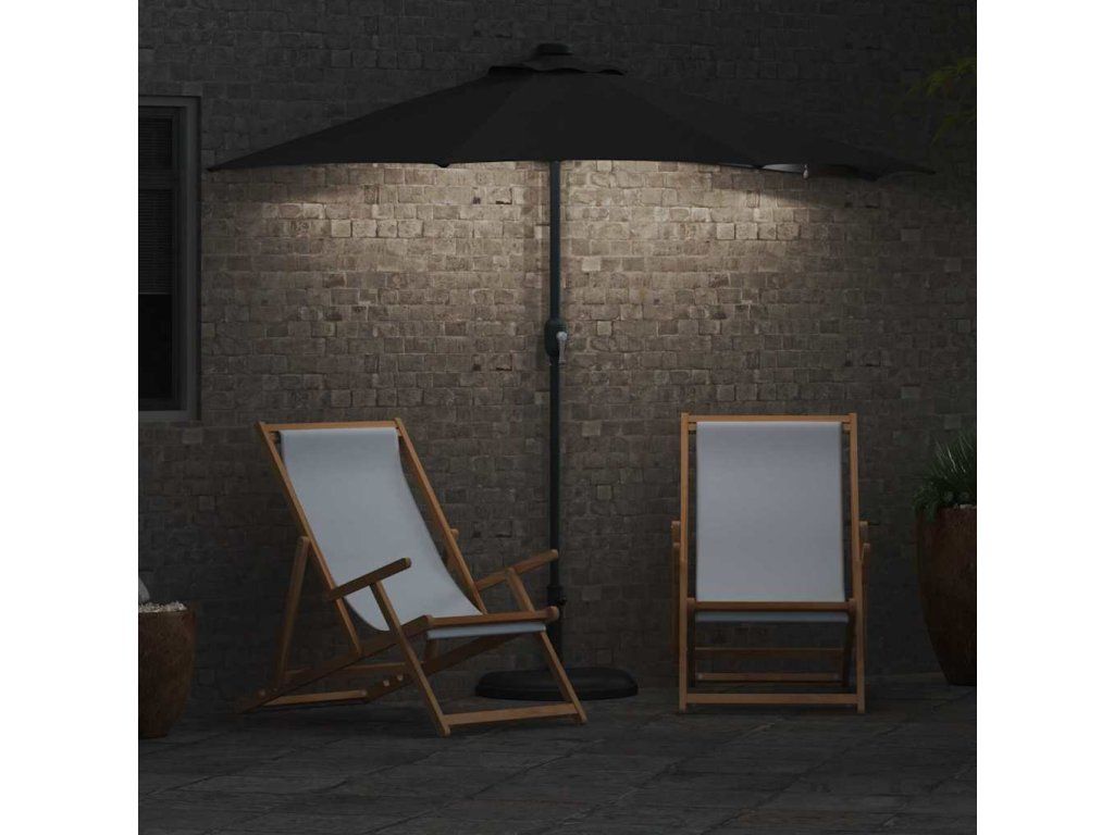 - Funkce / Design: Skládací design usnadňuje ukládání, když se slunečník nepoužívá. Ruční klička umožňuje pohodlné otevírání a zavírání, což zvyšuje usability. Solární LED osvětlení poskytuje osvětlení na noc bez nutnosti externích zdrojů energie.