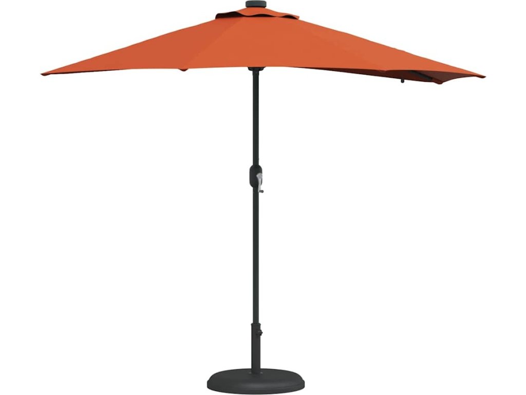 - Materiály: Slunečník je vyroben z pevného polyesteru a oceli, aby odolal venkovním podmínkám. UV-odolná polyesterová tkanina snižuje blednutí a zbarvení díky slunečnímu světlu. Ocelová konstrukce zajišťuje stabilitu a odolnost vůči různým venkovním faktorům.