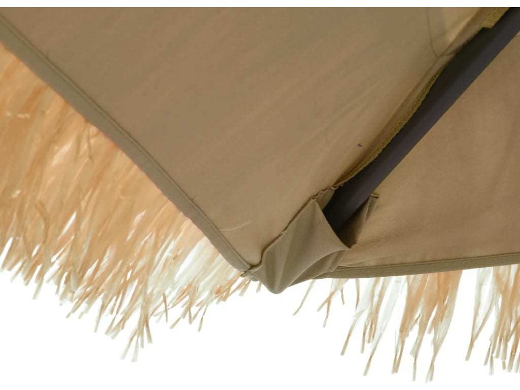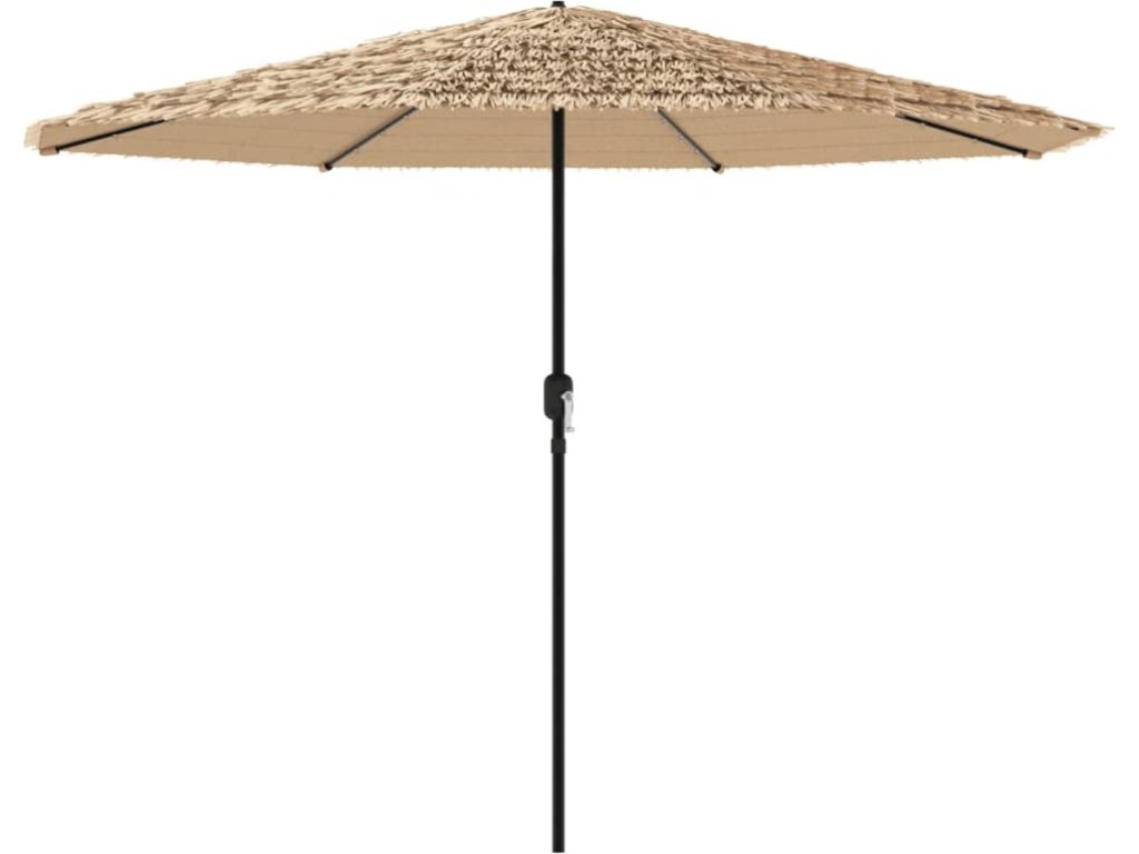 - Robustní konstrukce: Tento zahradní slunečník se opírá o robustní tyč a žebra v horní části, která zajišťují, že kryt zůstane vzpřímený i za větrných dnů.