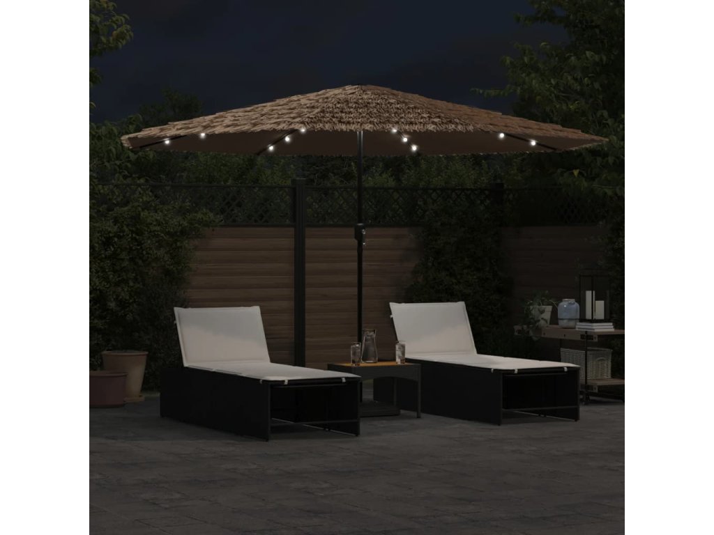 - Jasná LED světla: Integrovaná LED světla slunečníku osvětlí váš venkovní obytný prostor a vytvoří útulnou a romantickou atmosféru po západu slunce.