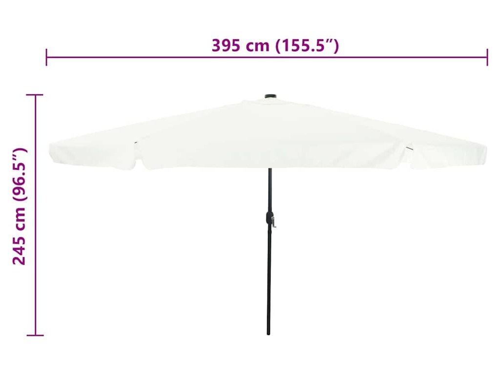 Tento moderní zahradní slunečník přetváří venkovní prostory na pohodlné a stylové útočiště, ideální pro rodinné akce nebo klidné úniky před žhnoucím létem. Jeho minimalistický design a stabilní konstrukce se hodí do zahrad a na terasy, kde nabízí stín a šmrnc. Představ si, jak si užíváš relaxaci pod jeho velkým pokrytím, zatímco integrované LED osvětlení promění každou zahradu na večerní oázu.