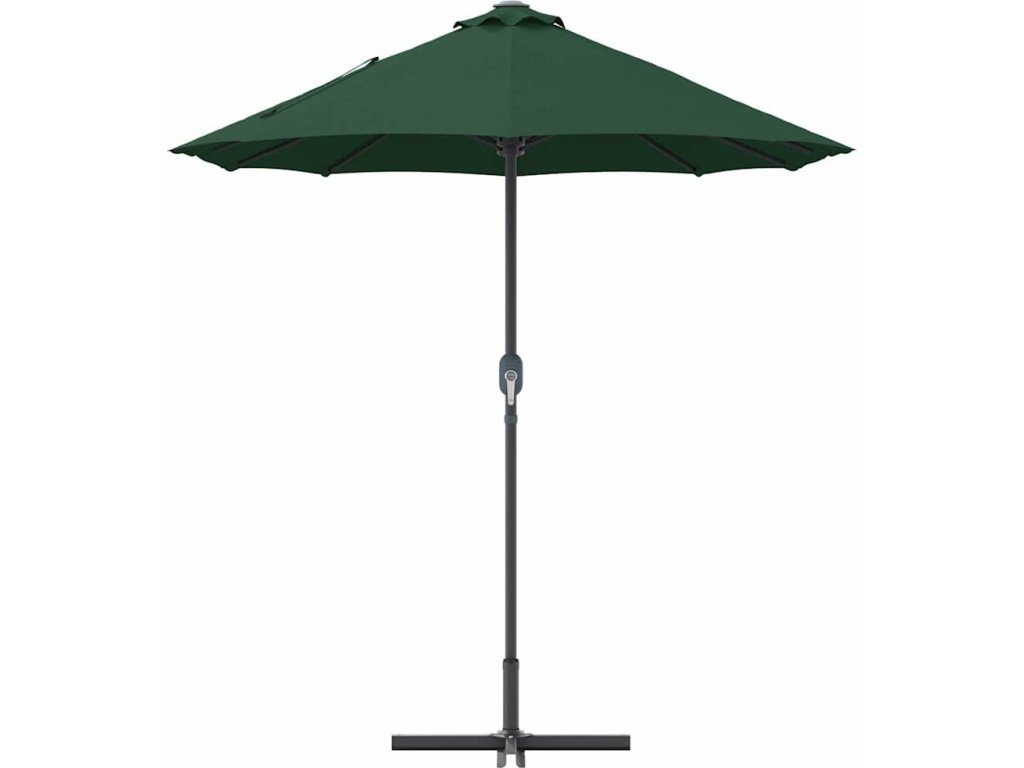 - Materiály: Kombinace polyesteru a hliníku zajišťuje skvělou kvalitu a trvanlivost. Polyesterový plášť je UV-odolný, což zabraňuje blednutí barev a prodlužuje životnost slunečníku.