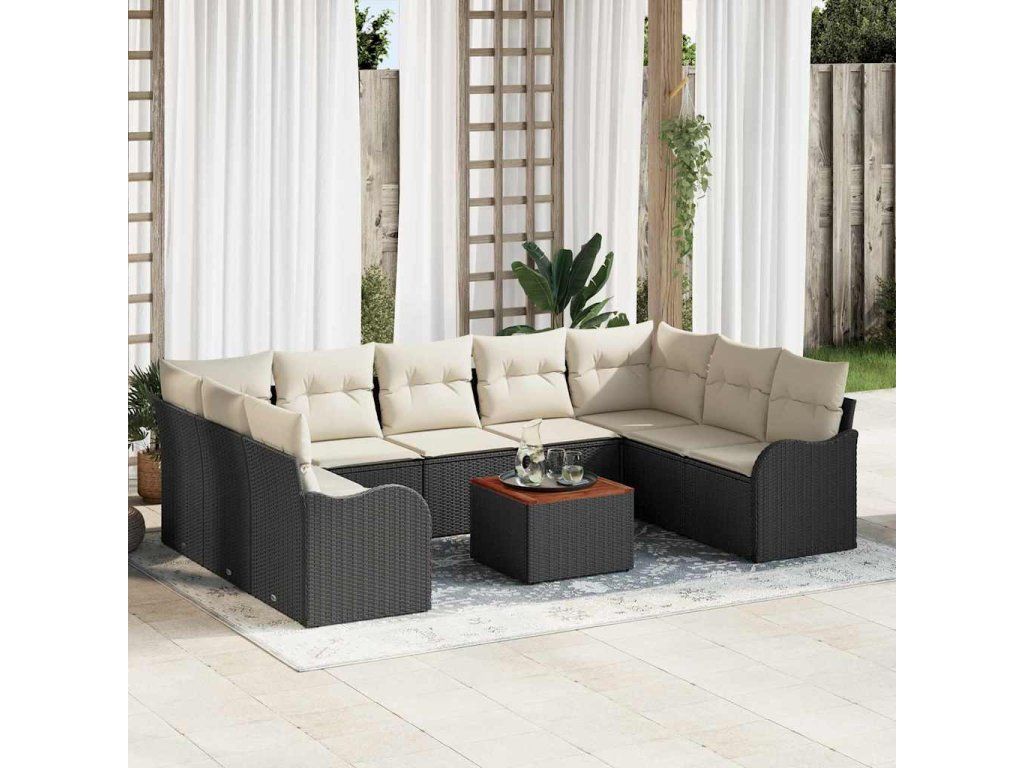 Sada zahradních pohovek 10 pcs Černá a krémová polyratan [3356164]