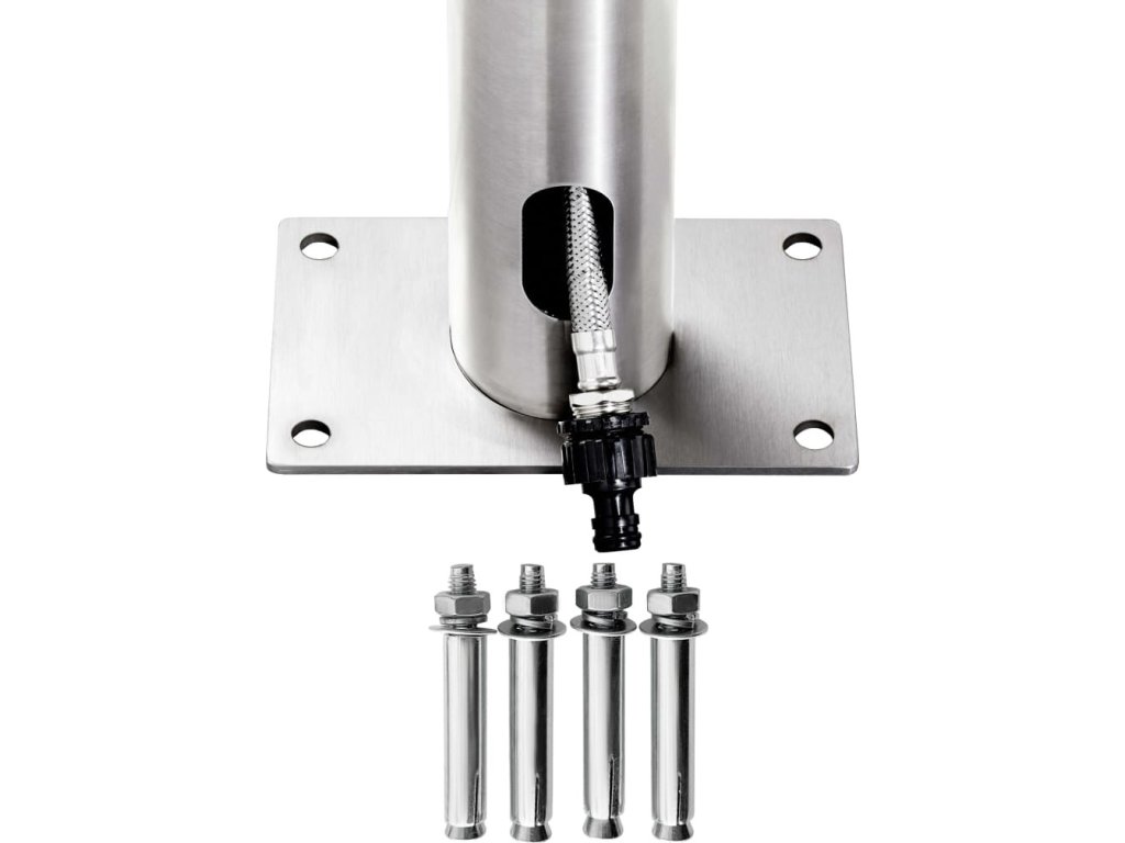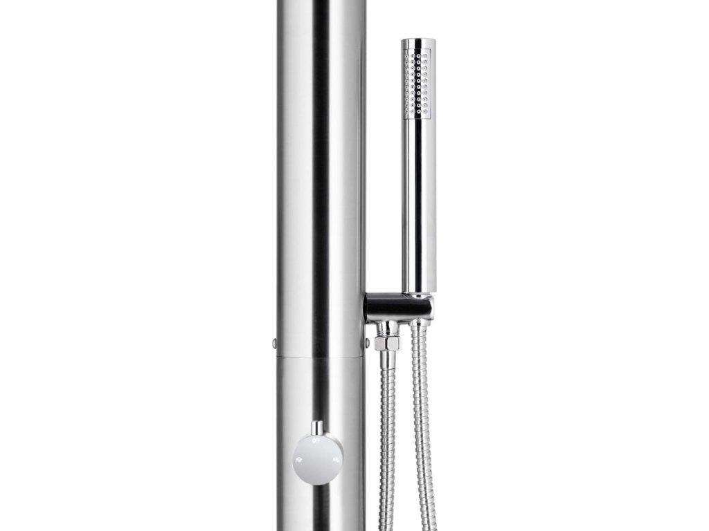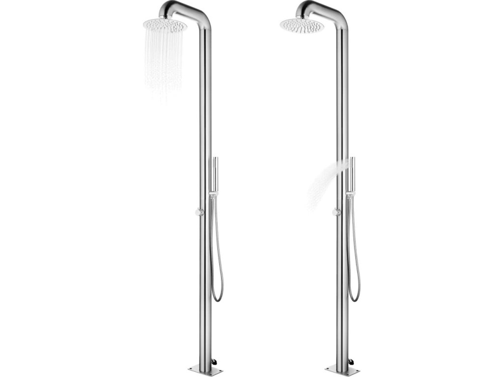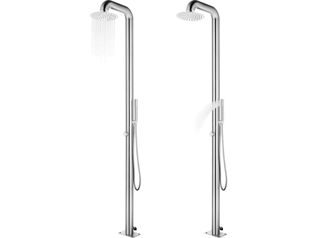 Tato zahradní sprcha je vyrobená z nerezové oceli, takže je klimaticky odolná. Sprchový systém má hlavovou sprchu a ruční sprchu, aby vám usnadnil práci na zahradě a umožnil zalévání a rychlé sprchování. Ruční sprcha má dvojitě zajištěnou pružnou 1,5m zahradní hadici. Je také vybavená mosazným držákem na ruční sprchu.