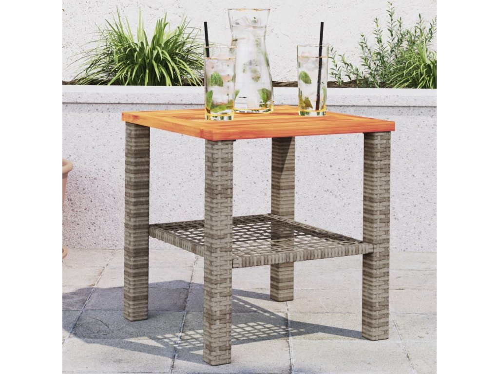 Zahradní stolek béžový 40 x 40 x 42 cm polyratan akáciové dřevo [366264]