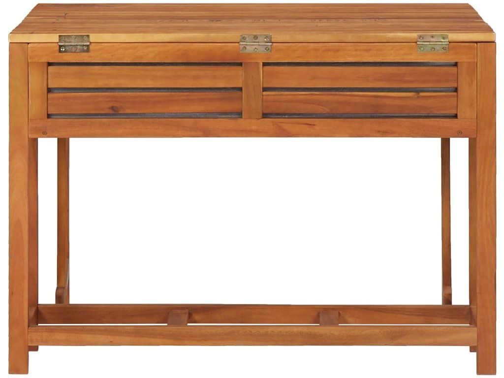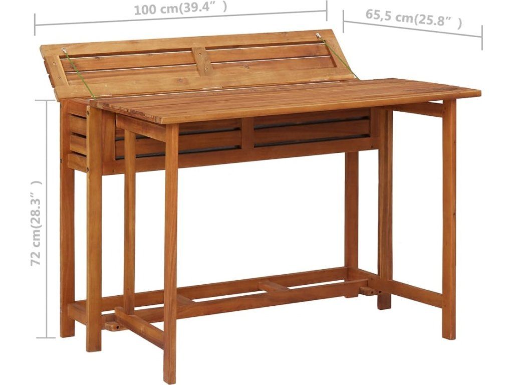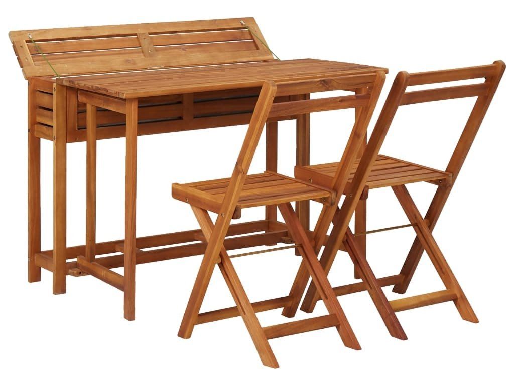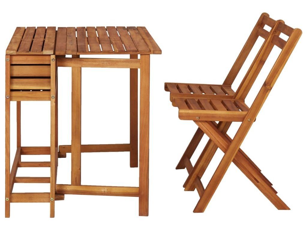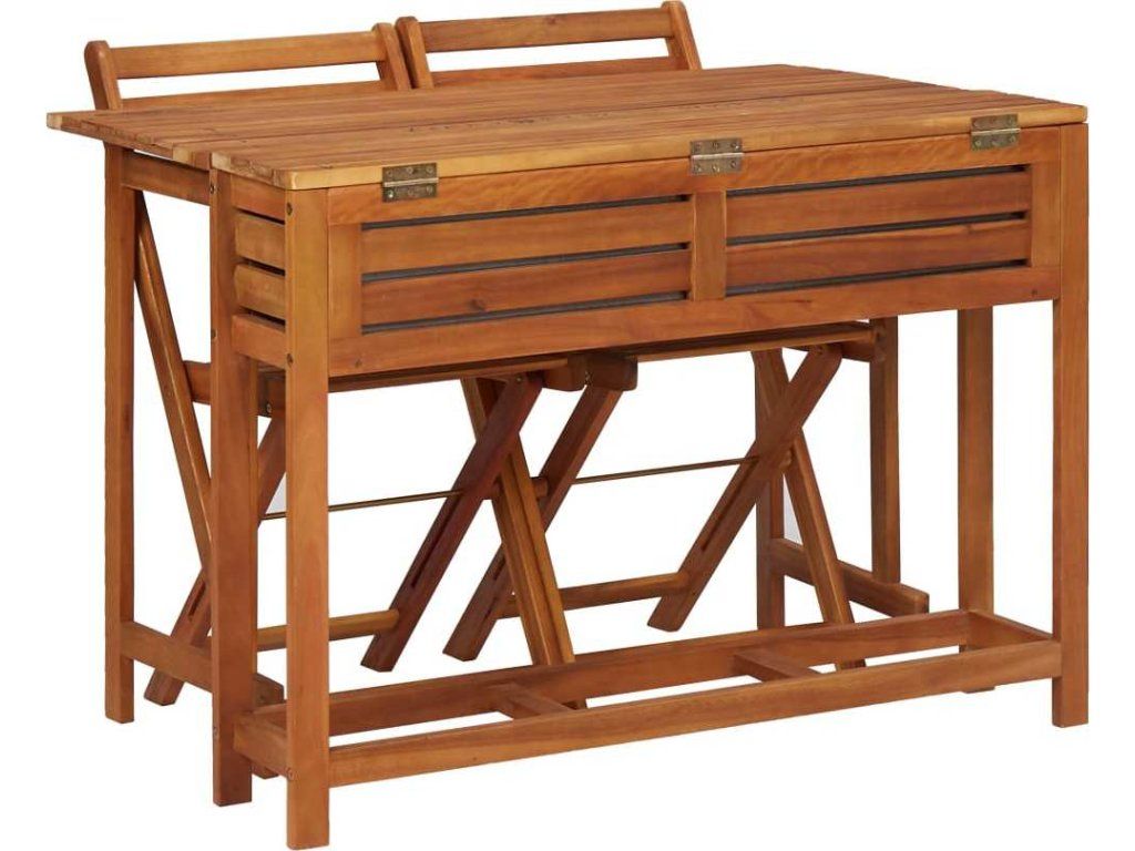 Tento set, vyrobený z masivního akáciového tvrdého dřeva s povrchovou olejovou úpravou, se vyznačuje odolností a robustností. Truhlík je v horní části opatřen víkem, kterým je možné přihrádku s květináčem zakrýt a rozšířit tak plochu stolu. V přihrádce je pozinkovaný květináč. Bistro židle lze také pro úsporu místa a snadnější skladování složit. Sestavení tohoto setu s dřevěným stolkem je snadné.