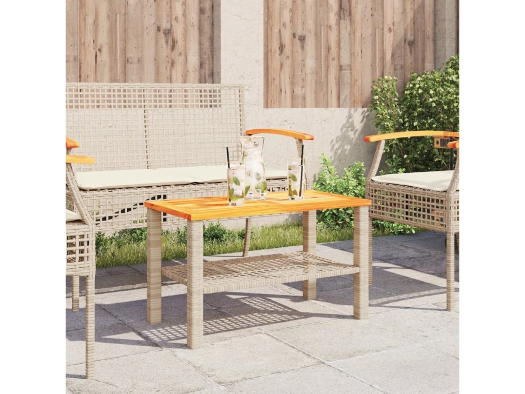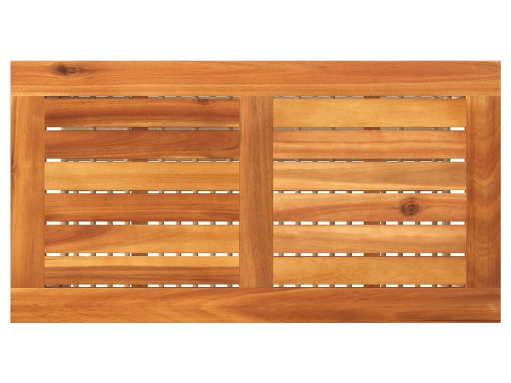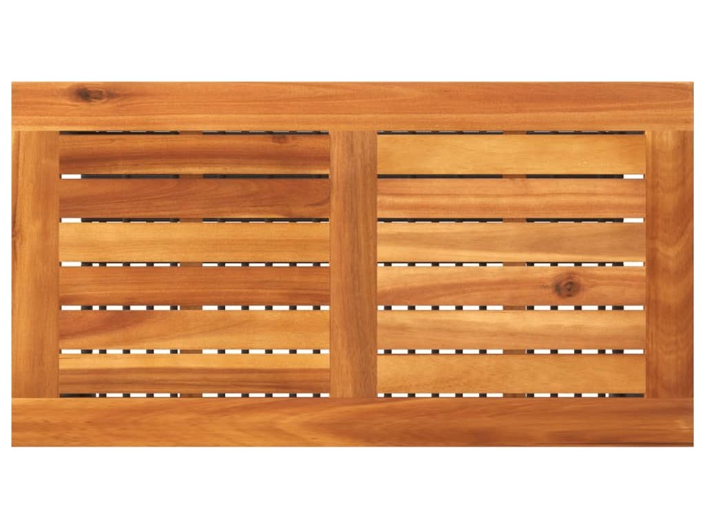 - Stabilní a snadno čistitelná stolní deska: Tento zahradní stolek má desku z akáciového dřeva, která je stabilní, odolná a snadno se čistí vlhkým hadříkem.