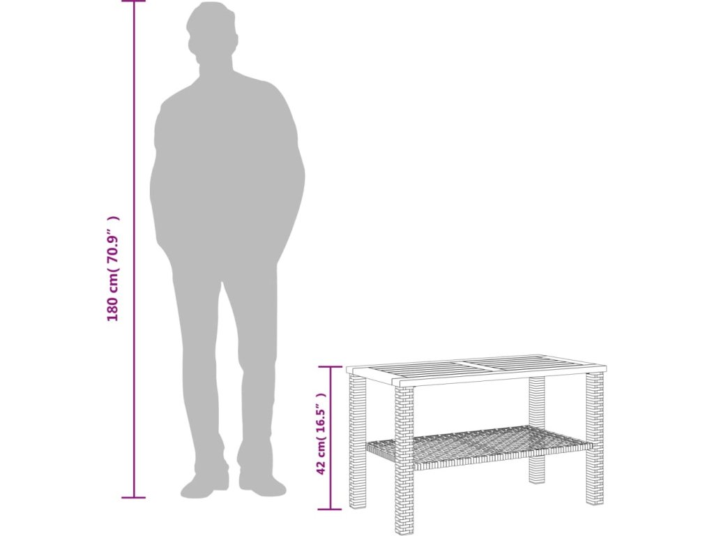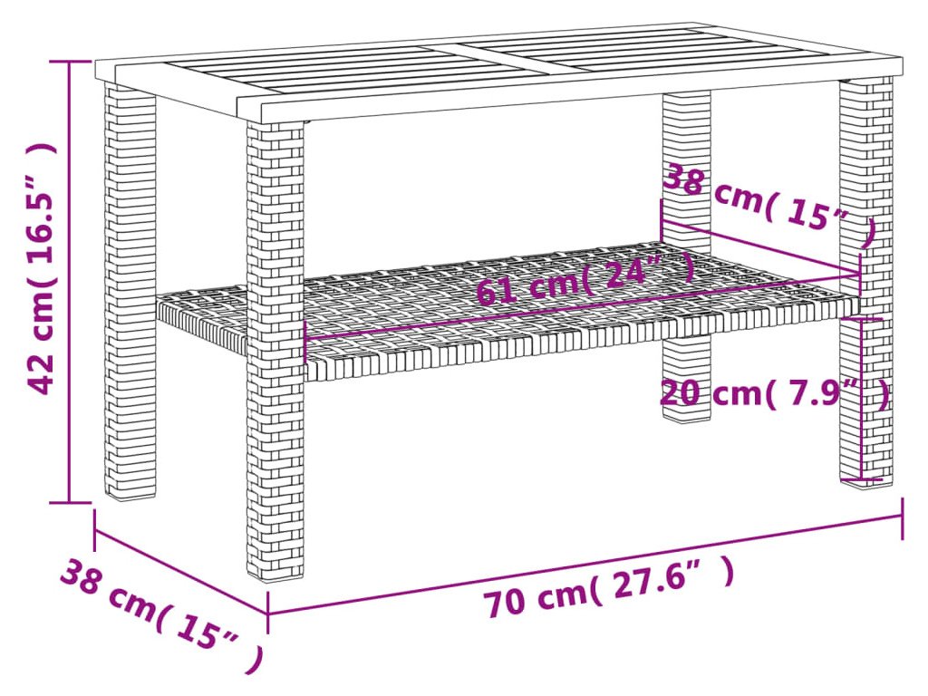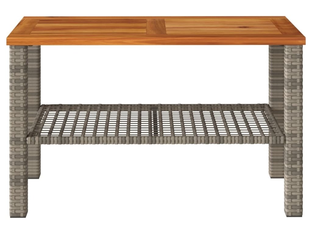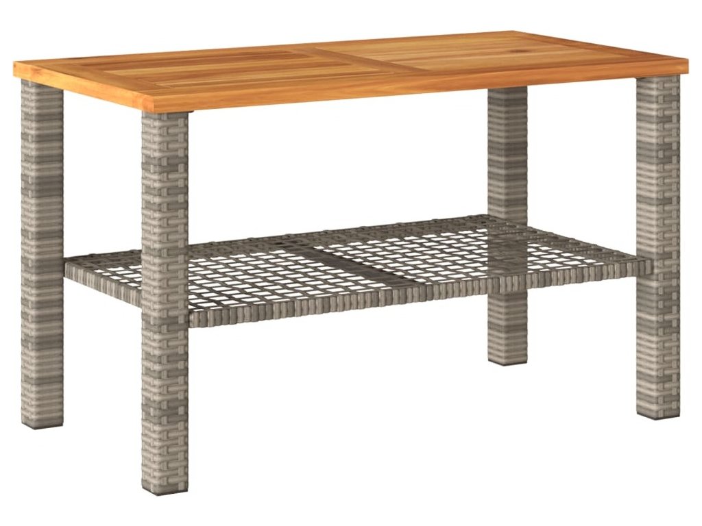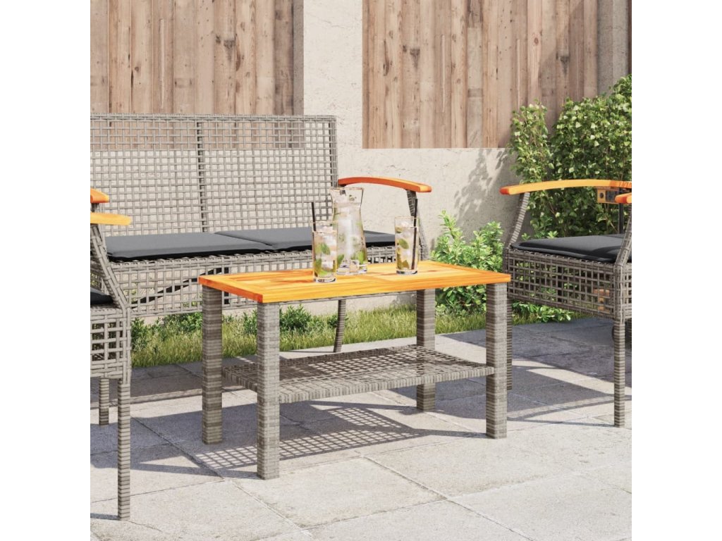 Zahradní stolek šedý 70 x 38 x 42 cm polyratan akáciové dřevo [366272]