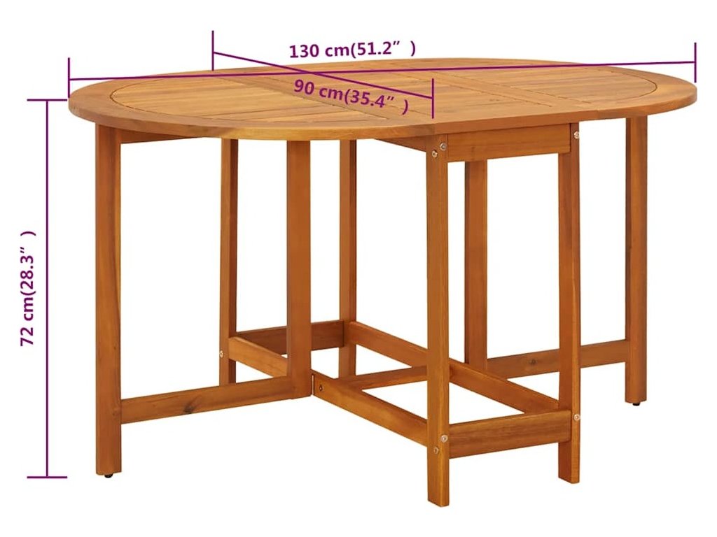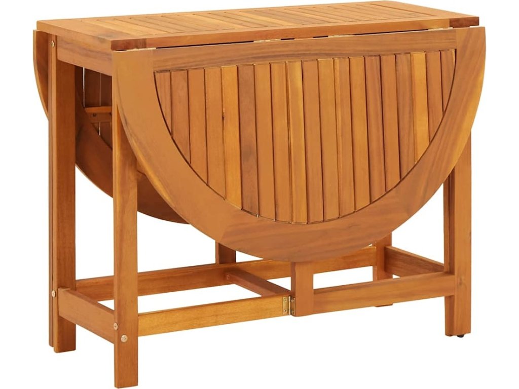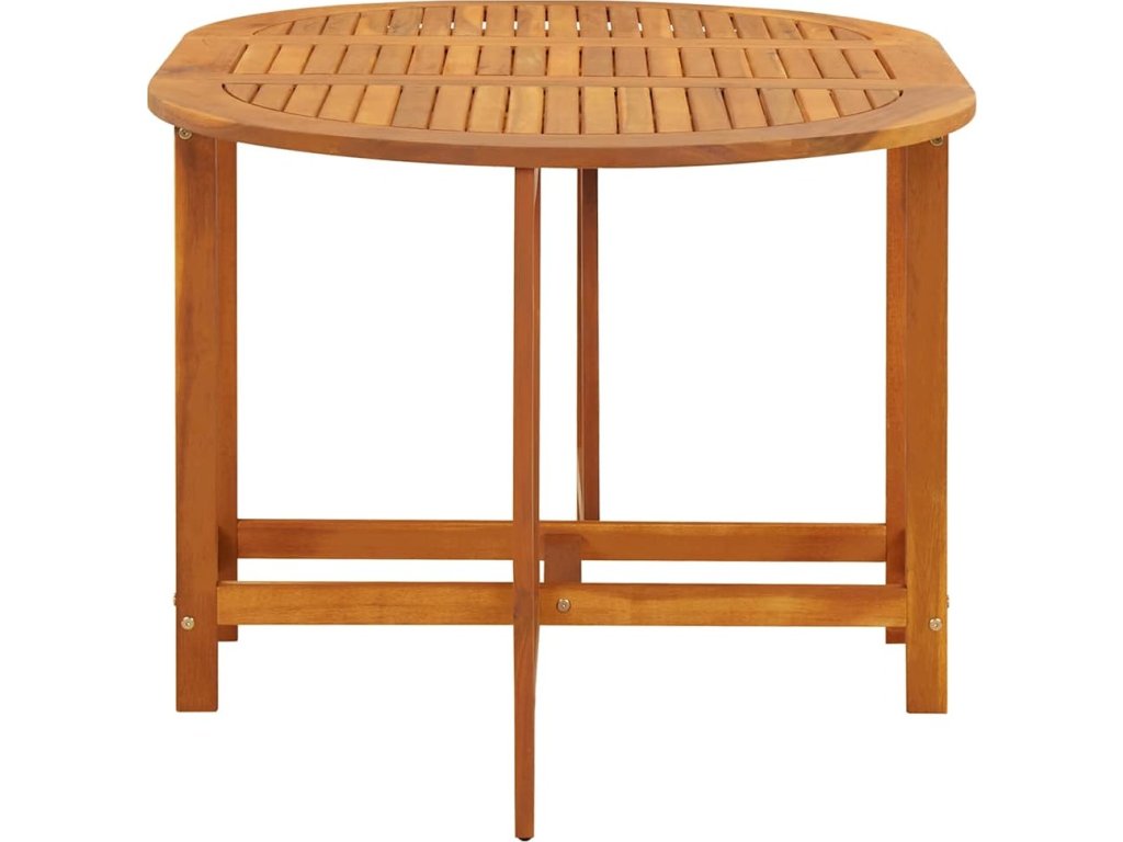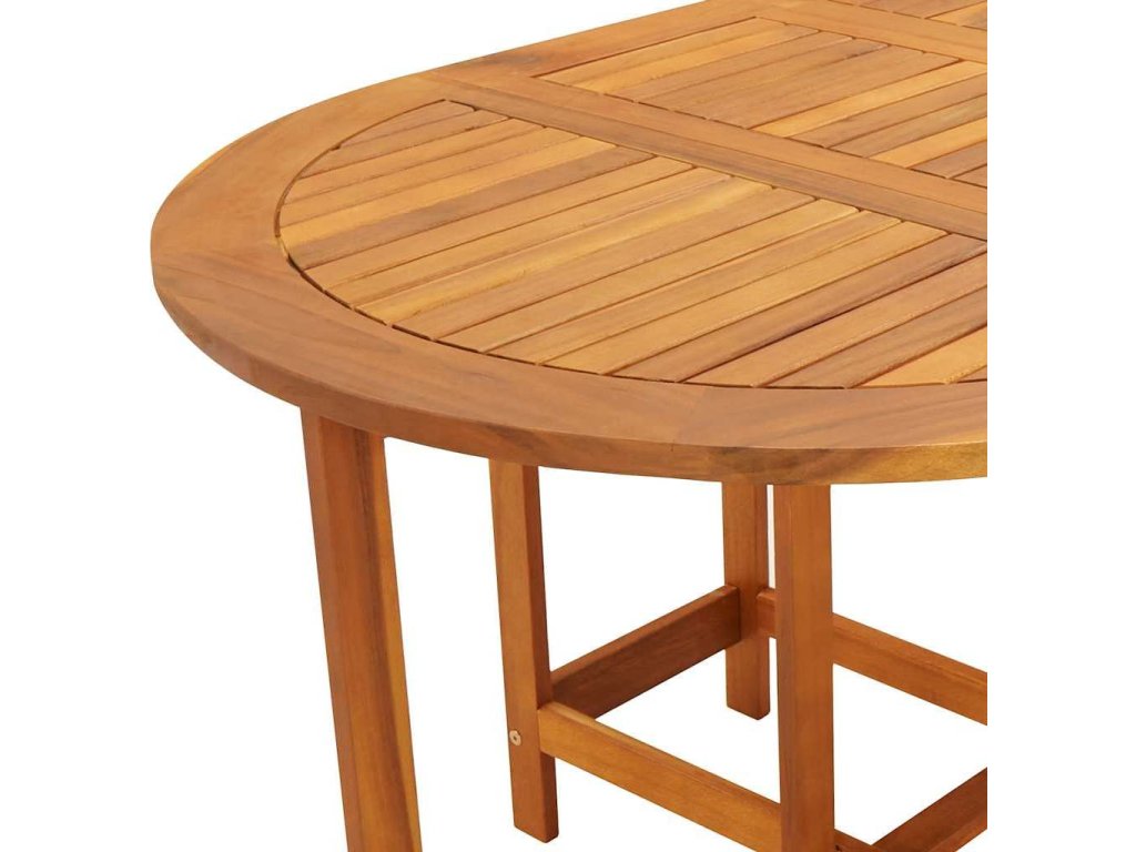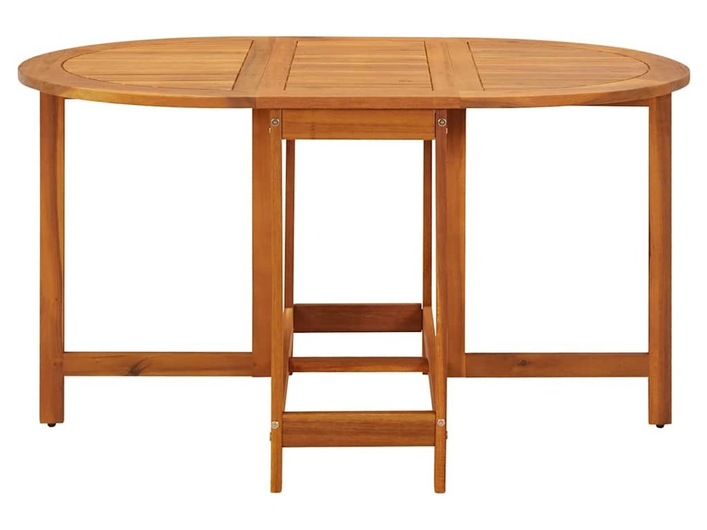 Tento jídelní stůl je vyroben ze silného akáciového dřeva, takže je velmi stabilní a odolný. Kromě toho hladký povrch s ošetřený olejem v přírodním odstínu umožňuje snadné čištění a ochranu před povětrnostními vlivy. Tento stůl lze snadno sklopit, když se nepoužívá.