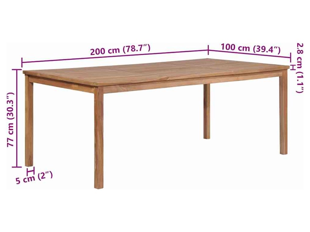 Zahradní stůl 200 x 100 x 77 cm masivní teakové dřevo [44998]