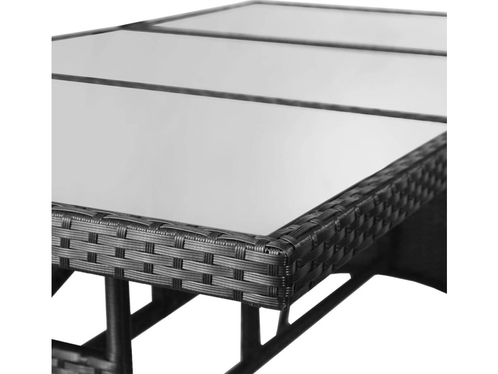 - Materiál: PE ratan, práškově lakovaná ocel, tvrzené sklo