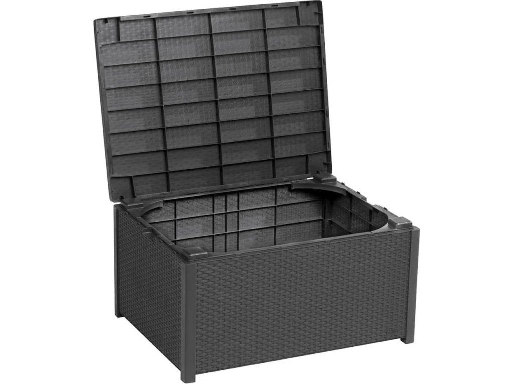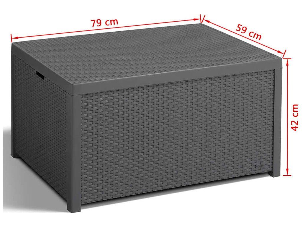 Zahradní stůl Keter Arica grafitovém provedení nabízí velkorysý úložný prostor a elegantní vzhled imitace ratanu. Díky nosnosti 50 kg a rozměrům 79 x 42 x 59 cm poskytne dostatek místa pro odložení nápojů i zahradních doplňků.