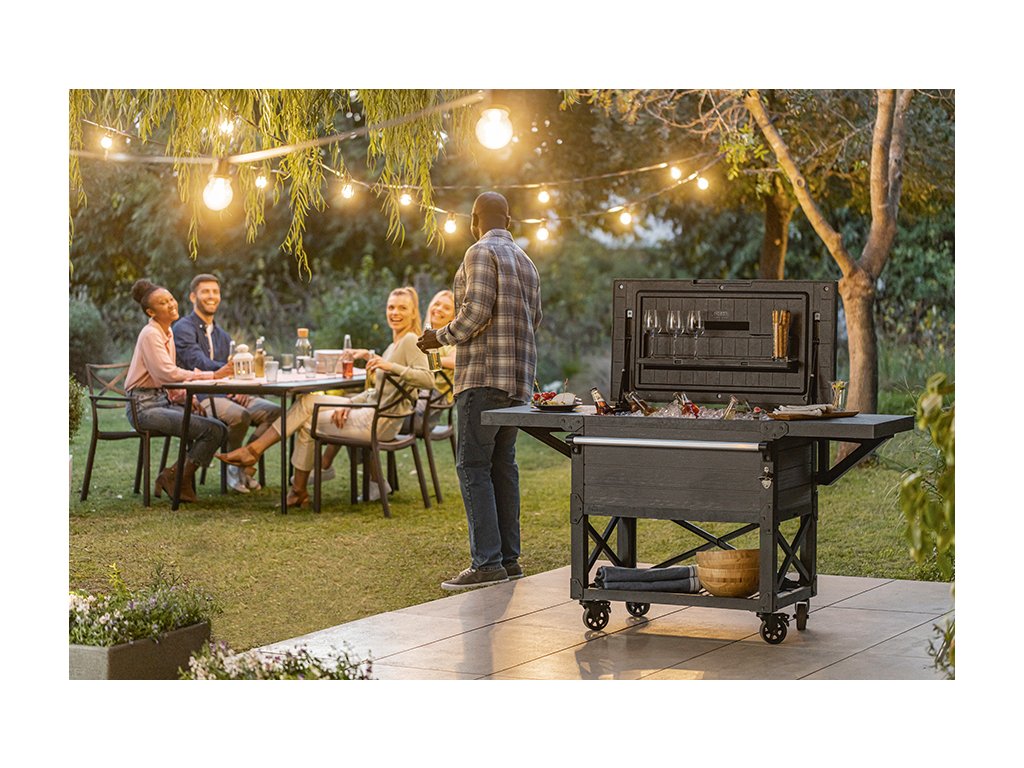 Občerstvení si bez obav připravíte v pohodlí domova a přenesete ho na stůl. Je vybavený kolečky a rukojetí, takže ho snadno přesunete z interiéru ven.