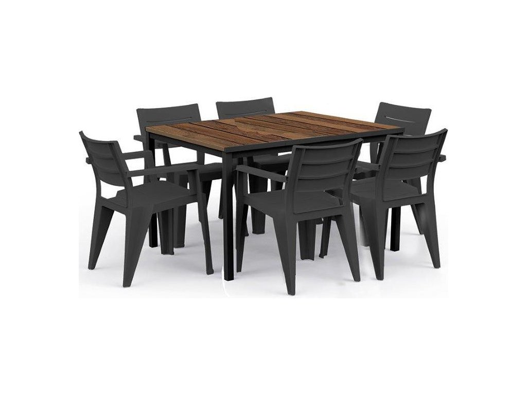 Díky unikátnímu povrchu DecoCoat odolá stůl nepříznivým povětrnostním vlivům a poškrábání. Zároveň si zachovává svou barvu. Textura navíc připomíná skutečné dřevo. Konstrukce je vyrobená z kovu, proto je stůl pevný a odolný.