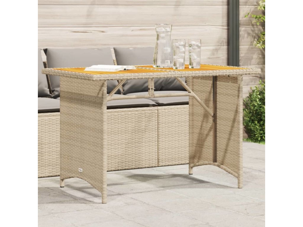 Zahradní stůl s dřevěnou deskou 110x68x70 cm polyratan [366357]