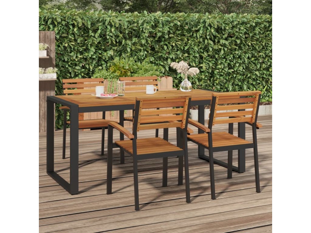 - Materiál: masivní akáciové dřevo s olejovou povrchovou úpravou, práškově lakovaný kov