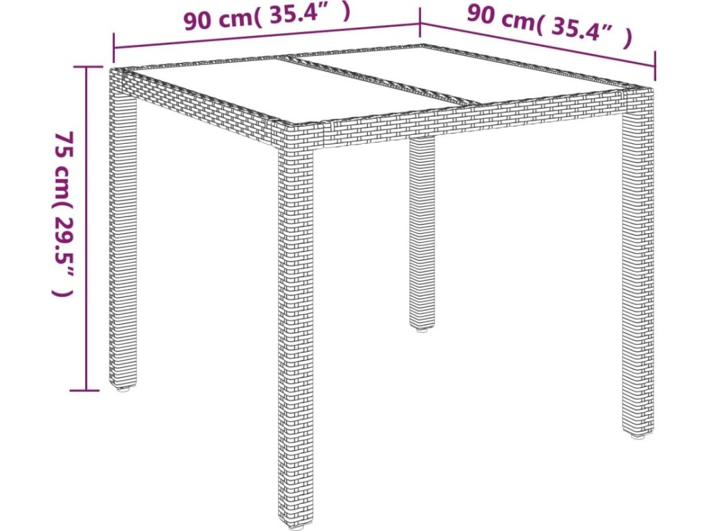 Zahradní stůl se skleněnou deskou 90x90x75 cm polyratan [319895]