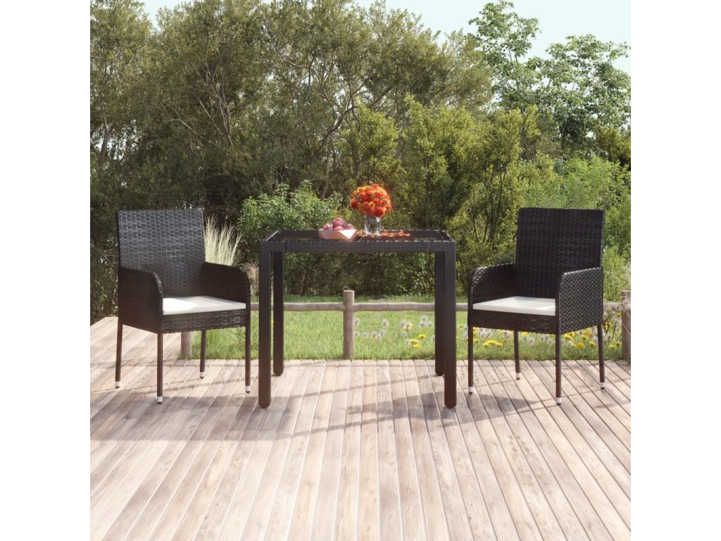 - Materiál: PE ratan, práškově lakovaná ocel, tvrzené sklo