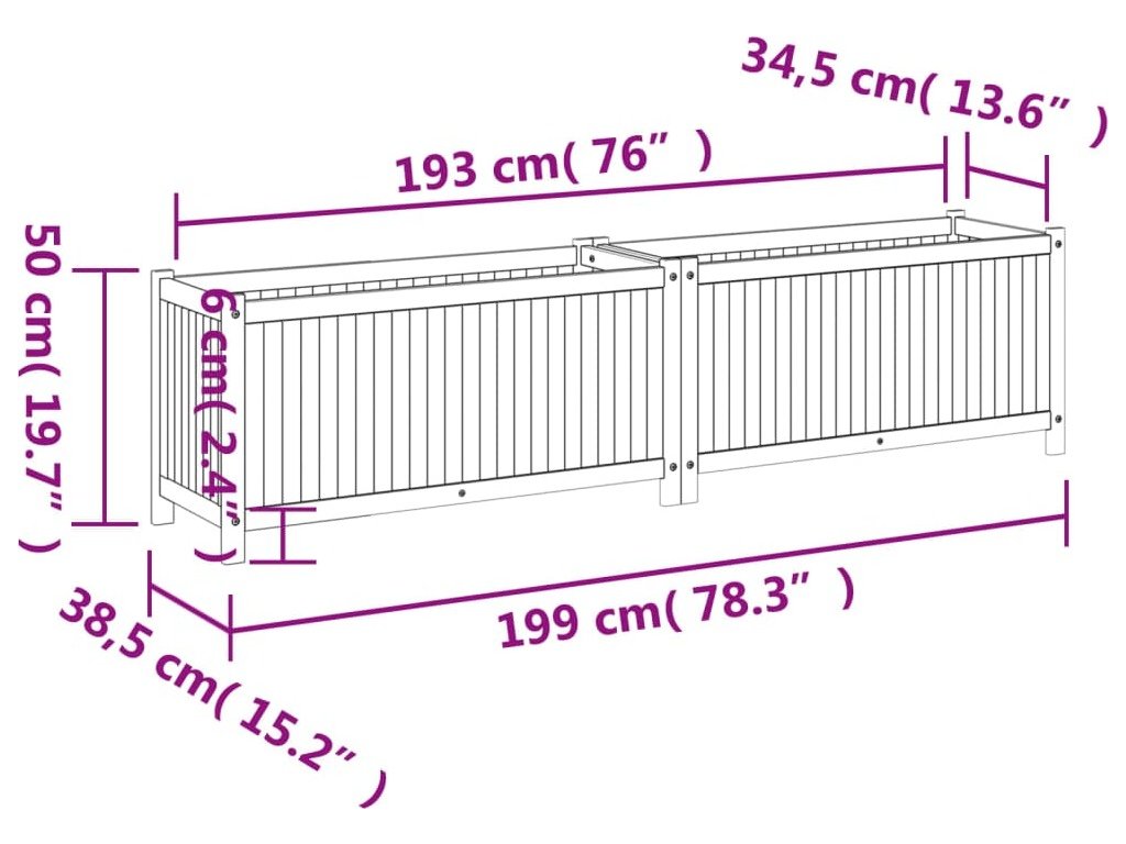 Zahradní truhlík s vložkou 199 x 38,5 x 50 cm masivní akácie [366443]