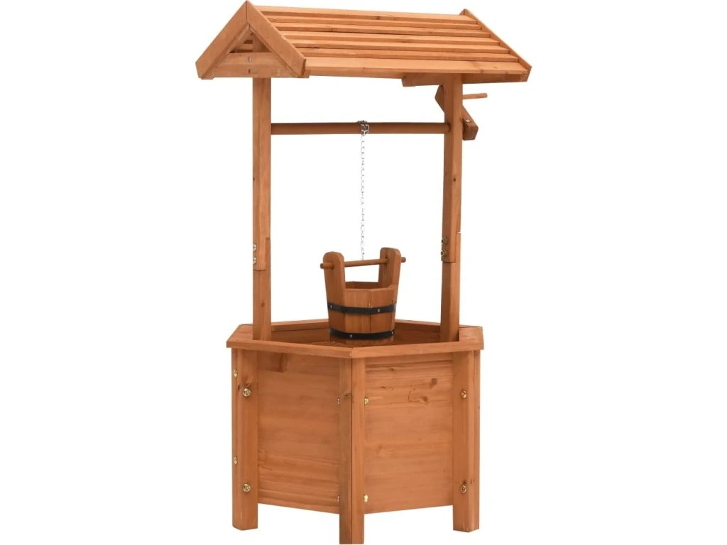 Podívejte se na tento stylový a okouzlující dřevěný truhlík, který vypadá jako zahradní studna! Je to vynikající dekorace pro váš trávník, zahradu a další venkovní bydlení.