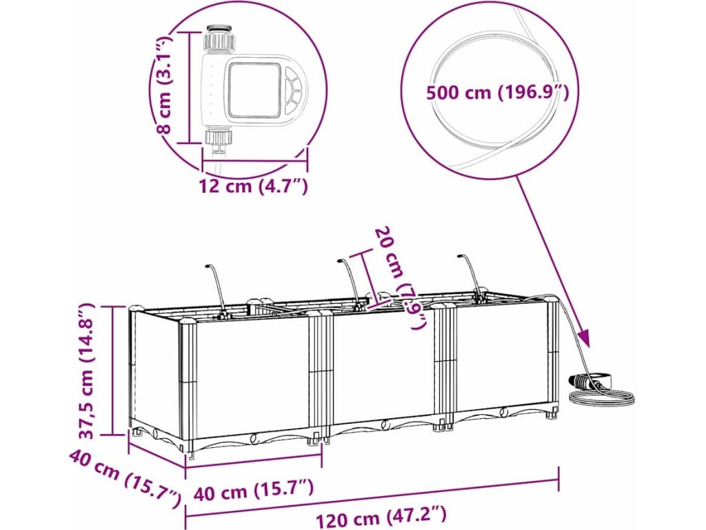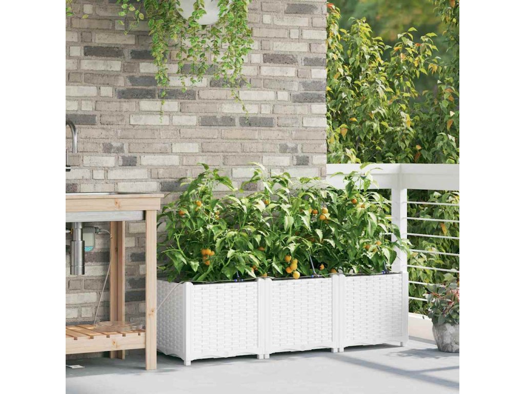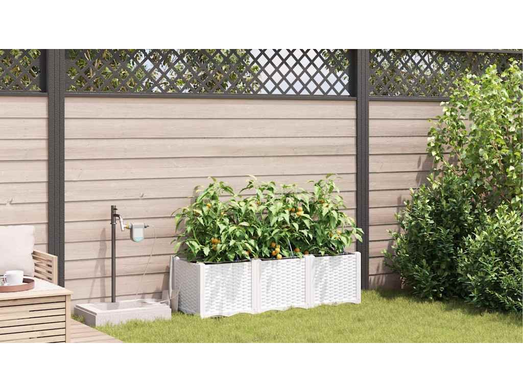 Zahradní truhlík se zavlažováním je ideální pro ty, kdo hledají praktickou a hezkou možnost do svého venkovního prostoru. S moderním a elegantním designem se bezproblémově hodí do jakékoli zahrady nebo na terasu. Zaměřuje se na jednoduchost a funkci, takže dodává vašim rostlinám styl, ať už jste zkušený zahradník, nebo začátečník. Tento truhlík spojuje styl a užitečnost a vytváří hezké prostředí pro vaše botanické projekty.