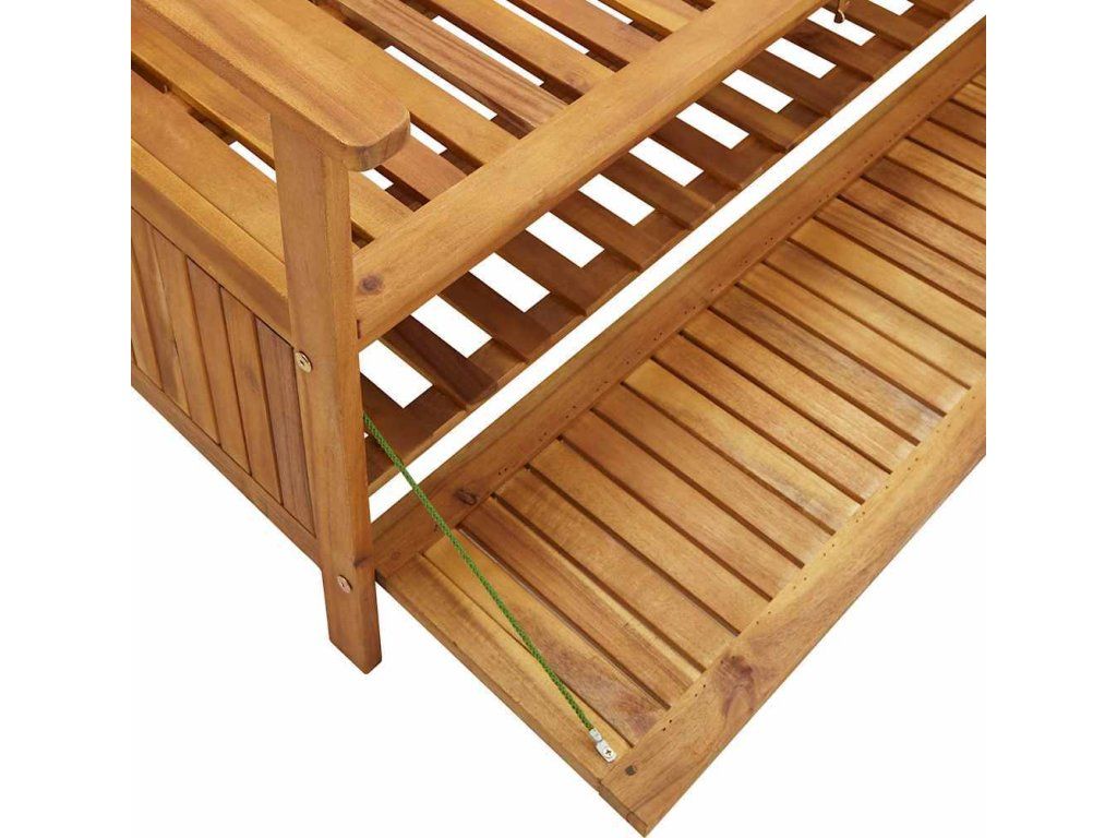 Venkovní lavice je vyrobená z masivního akáciového dřeva, které bylo napuštěné přírodním olejem. Je robustní, má dlouhou životnost a snadno se čistí. Disponuje jednou prostornou přihrádkou, v níž najdete spoustu úložného prostoru.